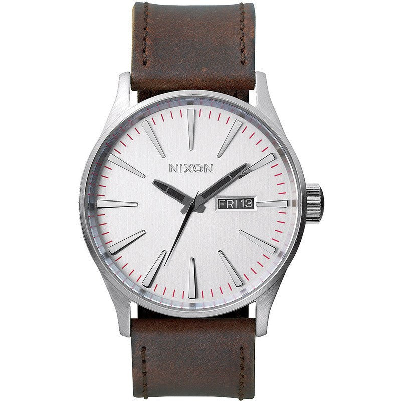 Don't be caught unprepared. The Nixon Sentry Leather Watch covers all of the bases, providing protection from most everything that could happen within the seconds, hours, days, weeks, and months of the regular calendar. It's your can't stop won't stop, always obedient, ever-watchful, and timely guard against mayhem. Unless otherwise ordered.
