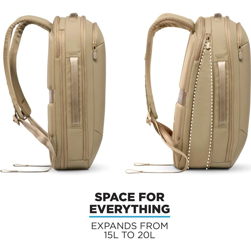The Nomatic Navigator RS Backpack 15L is built for the minimalist who still needs a functional and feature-rich pack for everyday use. This pack can expand an additional 6L, taking it from 15 liters to 21 liters if you need more space while on the move. The main compartment of the bag features a ¾ zipper, giving you wide access and full visibility to its internal storage. The main compartment is optimized for organization, featuring two mesh pockets, two stretch-liner pockets, a zipper pocket, and two pen pockets. It also has a dedicated laptop and tablet pocket, with a dividing wall and false bottom to protect your devices. We’ve also added cord pass-throughs so you can charge while on the move. On the side of the bag, we’ve added a hidden water bottle pocket that tucks away when not in use. On the front of the bag, a quick-access fleece-lined pocket stows smaller items like keys, wallet, glasses, and other essentials. The back of the bag features an EVA-formed foam panel for comfort and breathability. There is also a luggage handle pass-through sleeve for seamless integration with a roller bag. The RS Backpack 15L also comes with an adjustable sternum strap on the backpack straps to help with even weight distribution. Comfortable, functional, and sleek, the RS Backpack 15L is destined to be your daily sidekick.