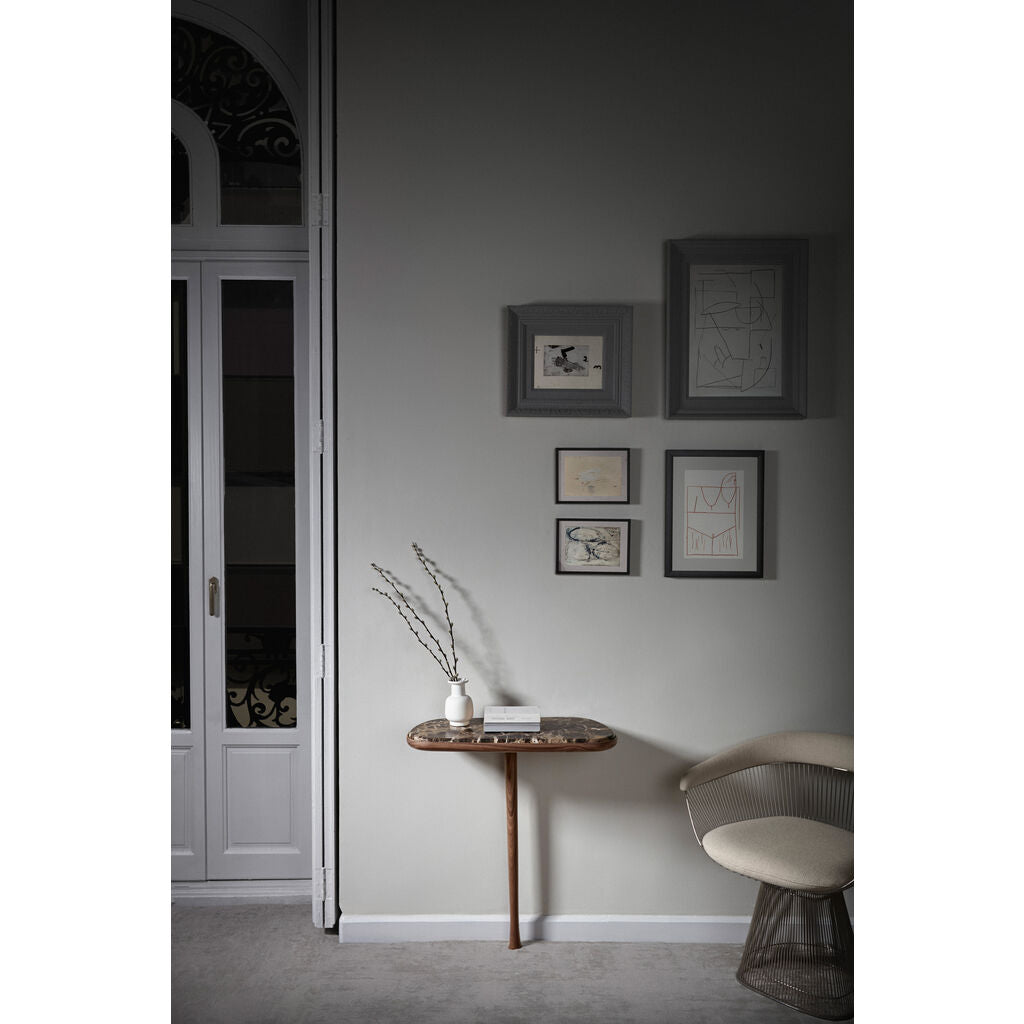 The Console Table offers a simple, yet bold accent piece that is sure to make a statement in any chic interior, featuring a slightly curved rectangular surface supported by a single leg. Available in Natural Solid Walnut with option Emperador Marble surface.