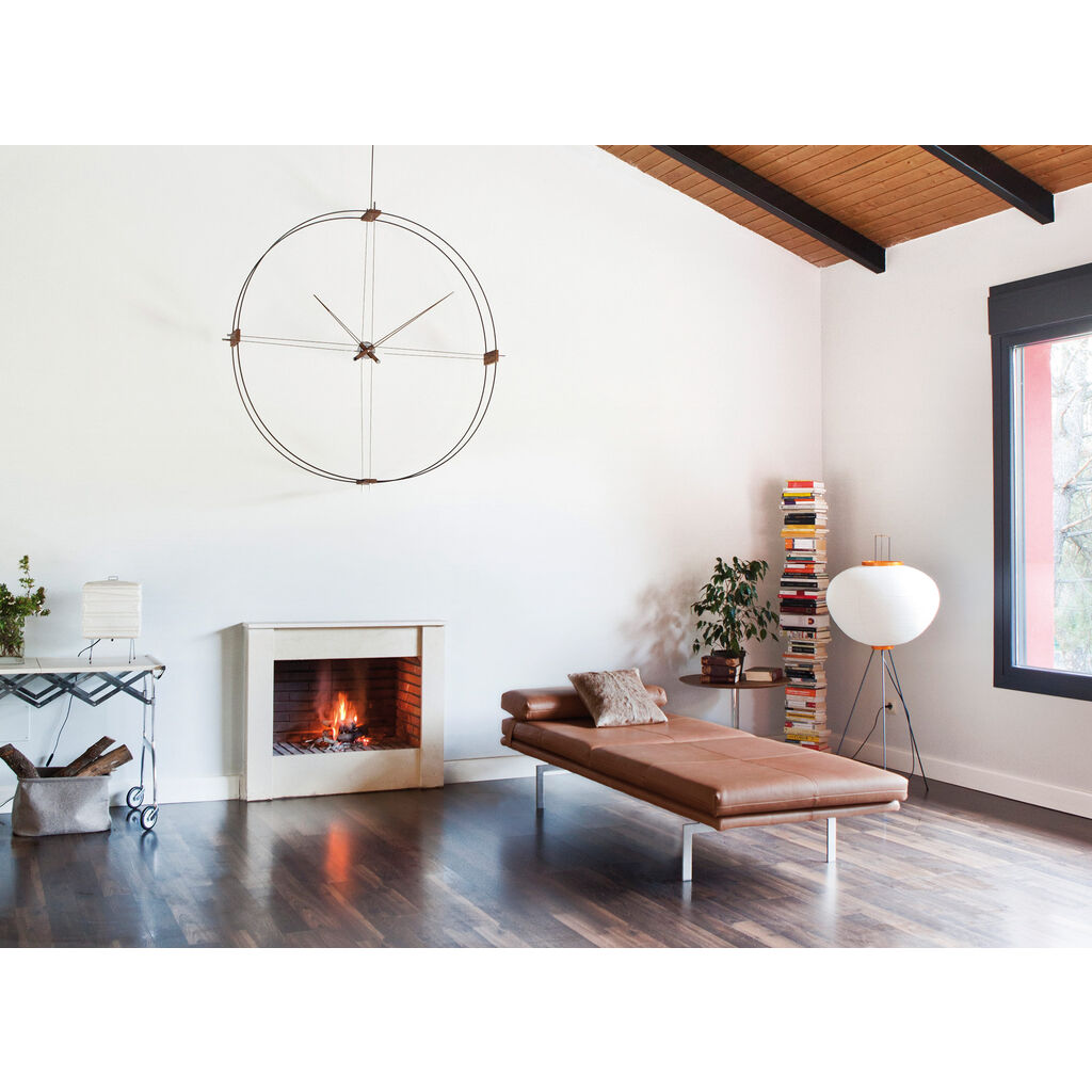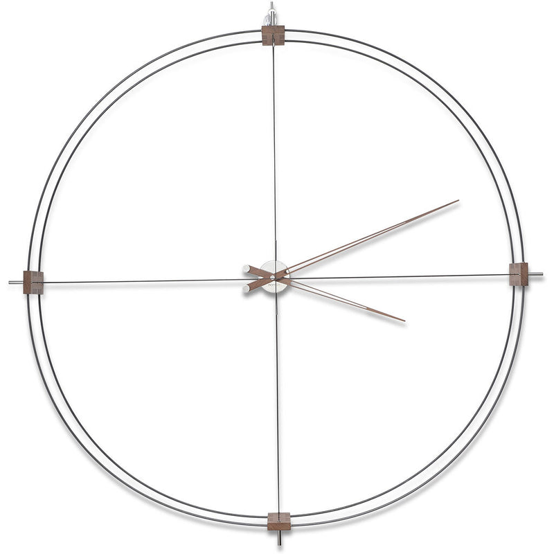 The innovative Delmori N clock by Nomon is one of the most requested designs on the market because it is a wall clock that comes with a support, with a double circle made of white or black fiber. It includes needles made of walnut wood and a central box in chromed brass. It can be hung both on the wall and on the ceiling. It is adjusted by means of a cross-shaped base that indicates 4 hourly points. If you want to combine it with modern furniture, it will look great if you have a Nordic-style interior decoration. It comes with a UTS machinery made in Germany. This type of mechanism is widely used in the manufacture of wall and table clocks, providing reliability to the clock as a whole. This style of clocks are widely used to decorate the walls of apartments, houses, offices and any type of interior. It incorporates technological advances whose results are quite original, exhibit an elegant presentation and have details in its case made of chromed steel. It works with batteries and does not require electrical connections for its operation. It is ideal for houses that have a decorative style with a very avant-garde design, as it is a modern wall clock. It offers a unique style, is avant-garde, guarantees quality and efficiency in its operation.