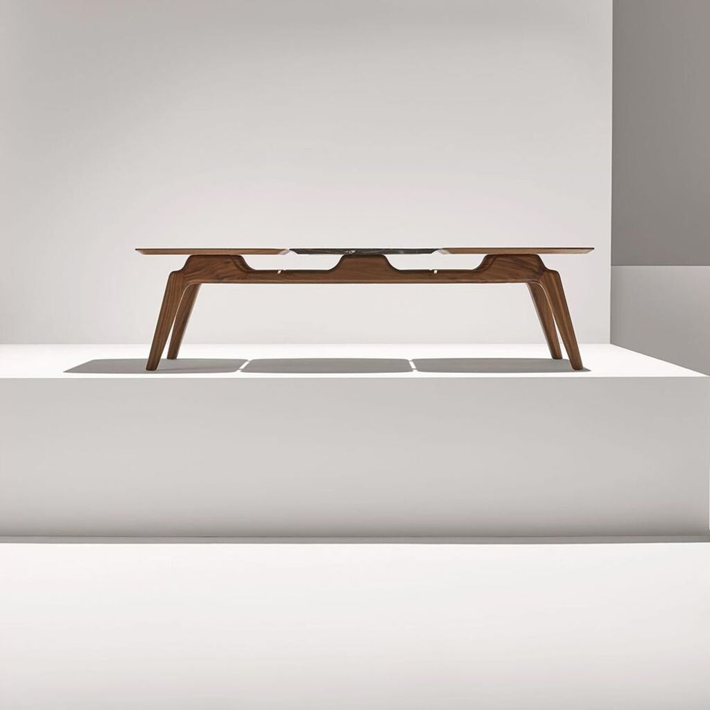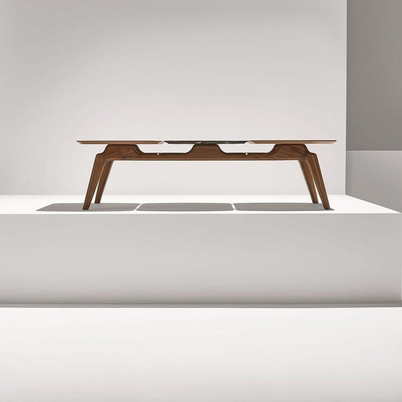 This elegant table with a strong personality and great presence will not go unnoticed. It is allowed to combine materials such as walnut with different types of marble, resulting in a very versatile designer table.