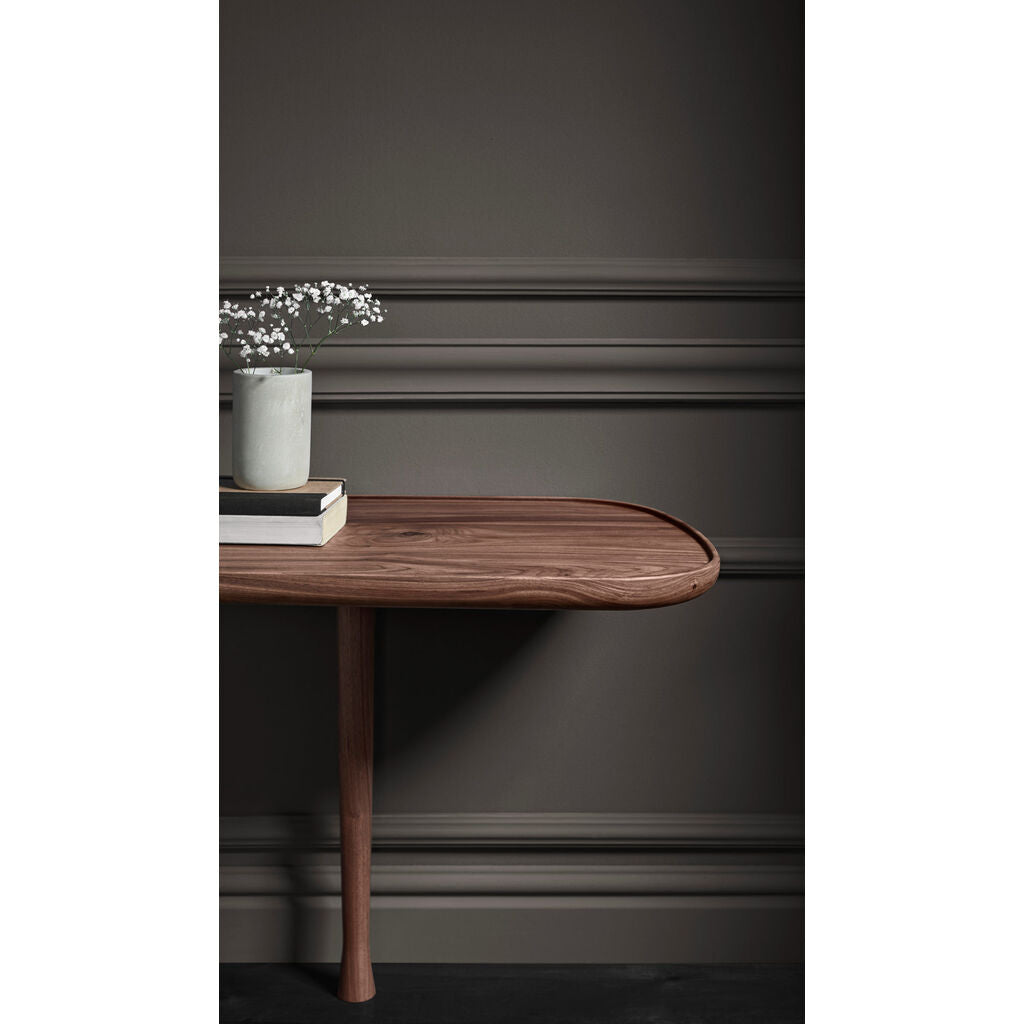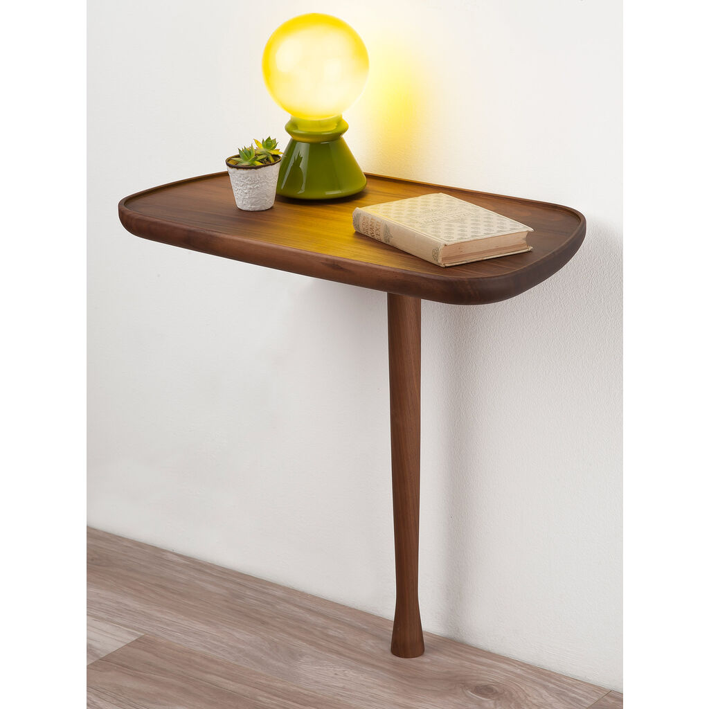 The simple yet unique Mesita Table rests against walls and is ideal next to a couch, bed, chair, or doorway. Handcrafted of solid walnut with or without a marble top. Requires attachment to wall.