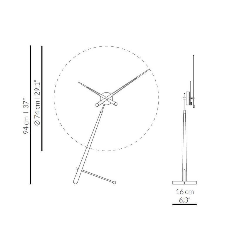 The Puntero Table Clock from Nomon offers intriguing design to living space. Provides impressive leaning design look using the highest quality materials. Hand made with variety of options to create the ultimate modern look for home. Puntero, meaning pointer showcases the marvelous needles that “point” to the time.