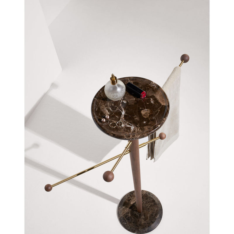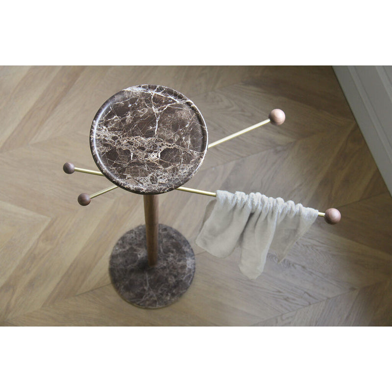 The Toallero Towel Stand is a sophisticated piece to add to your everyday routine. Inspired by an art gallery pedestal, this towel stand has a marble tray on top with two arms that slide through the base.