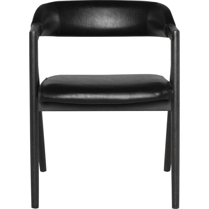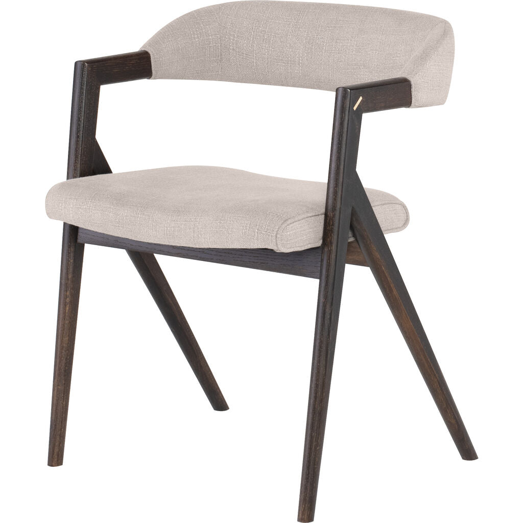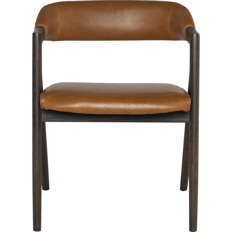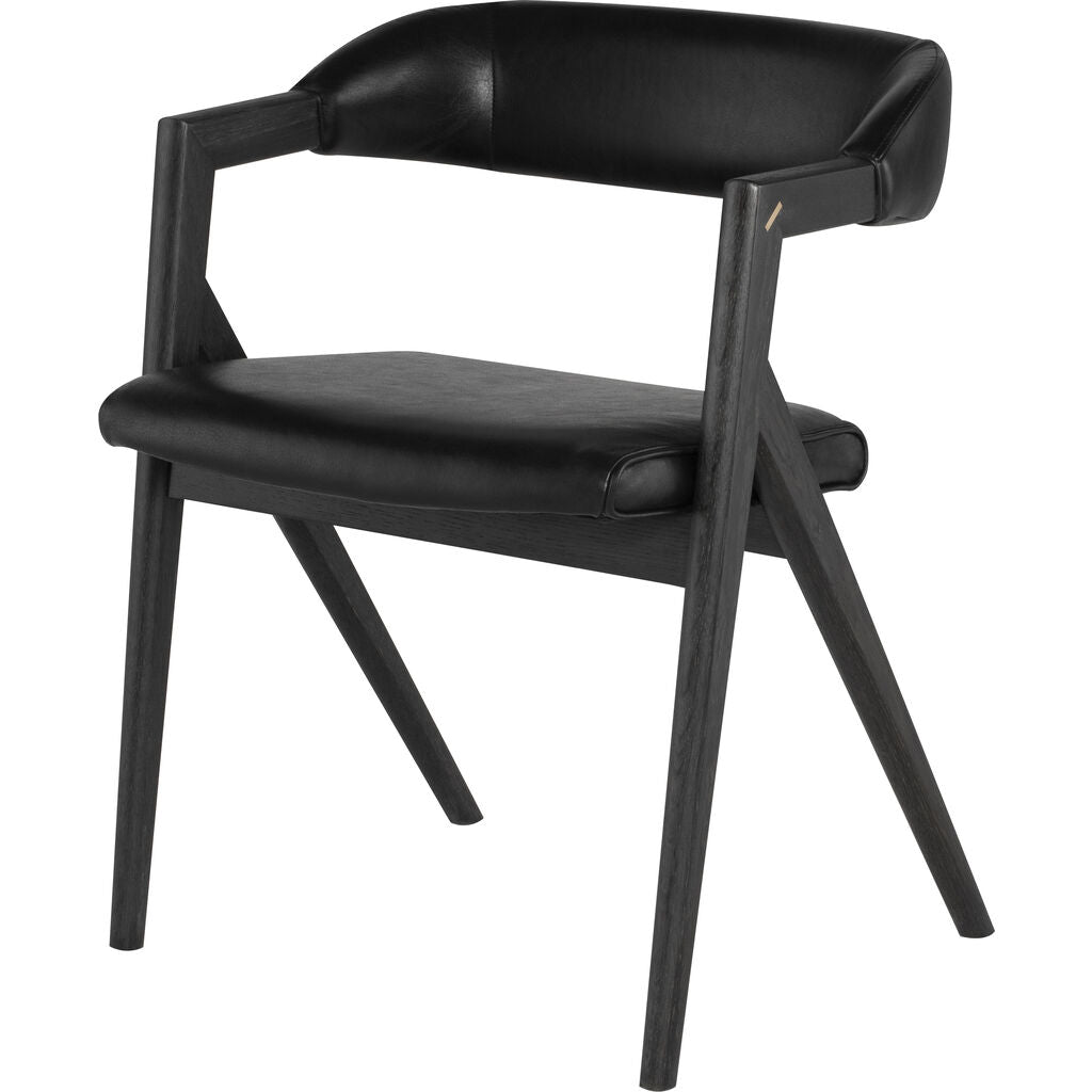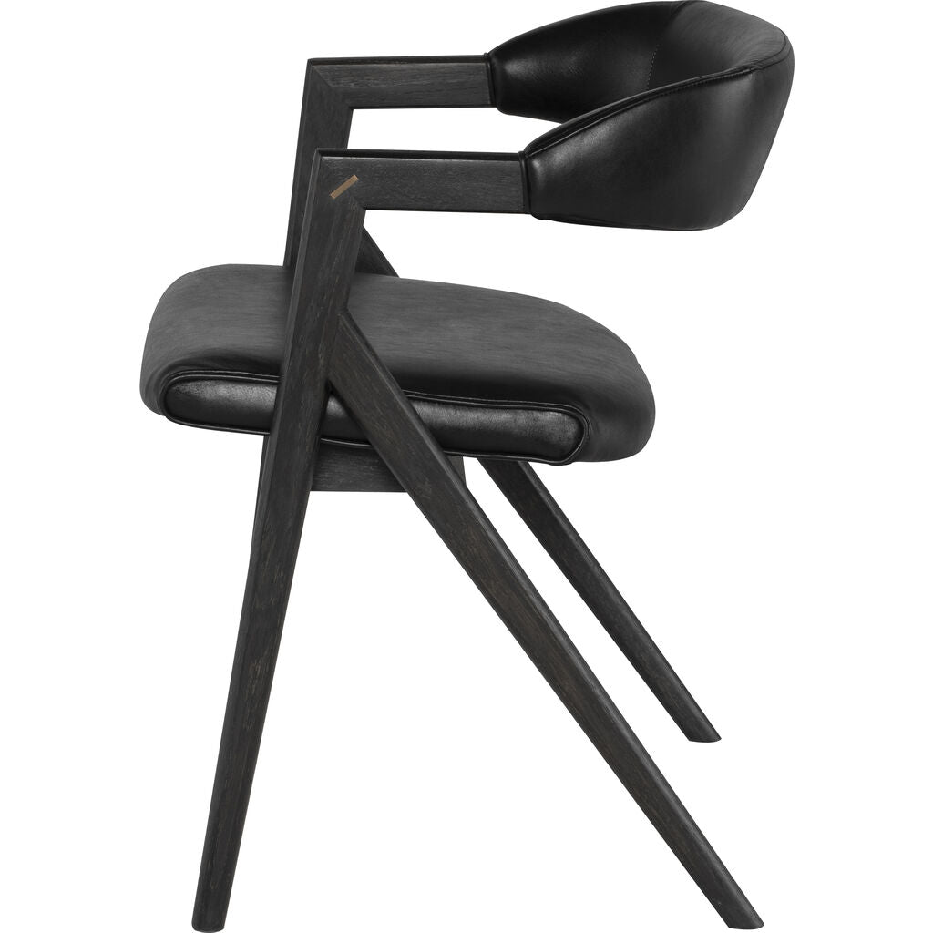 Clean cut lines create a strong frame for the Anita dining chair. The chairãs solid oak legs are slightly angled, forming an intriguing profile. A soft leather seat and back add comfort and contrast to the strong wood details.