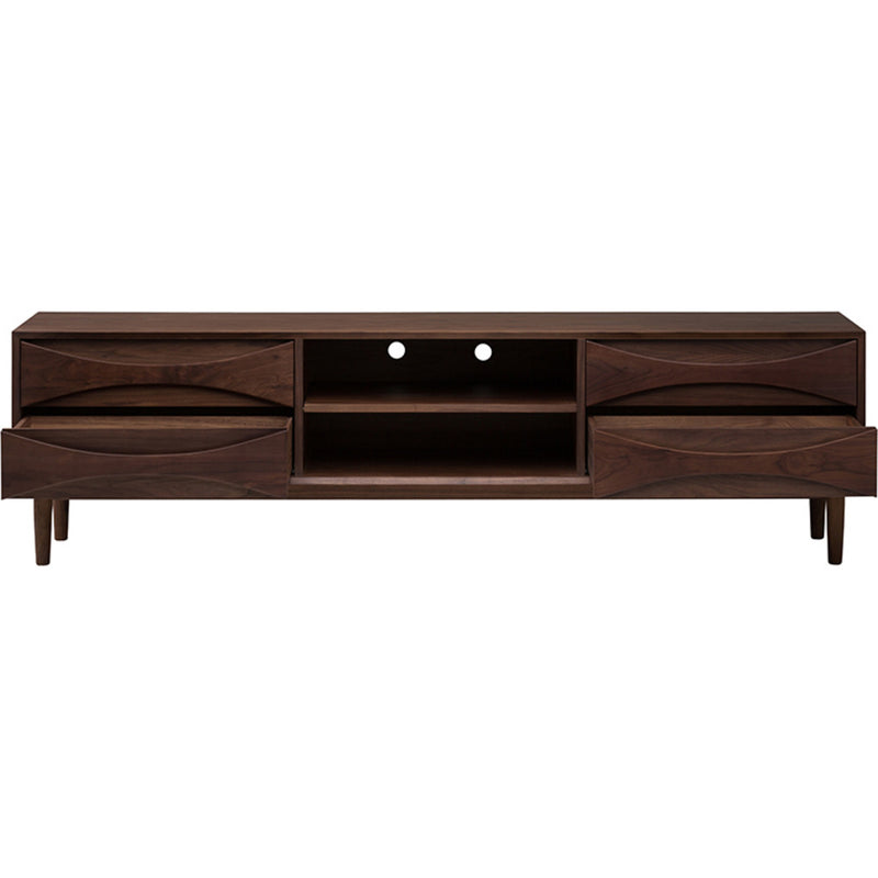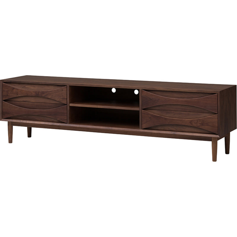 The Adele media unit is inspired by Mid-century design, a familiar form re-imagined for a contemporary space. The Adele media unit features four walnut doors and two open shelves perfect for technology integration.