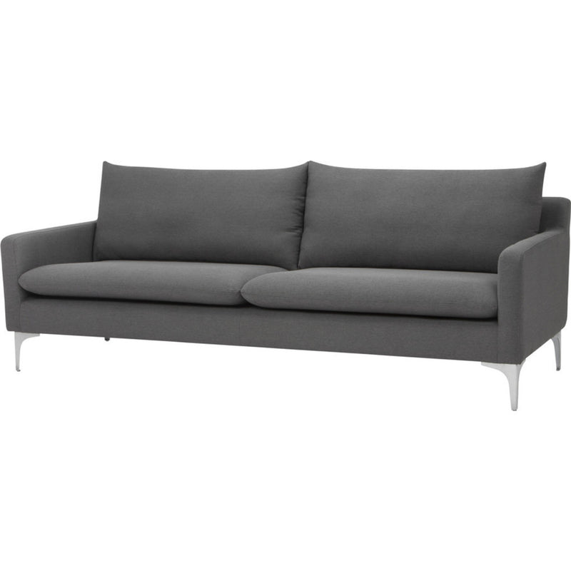 Put your feet up and get comfortable with the Anders Three Seater by Nuevo. This love seats superior craftsmanship and design boasts elegance and class. The Anders is ideal for living room's and lounges alike. Due to its compact design, this couch can easily fit in most rooms and still seat three people comfortably.