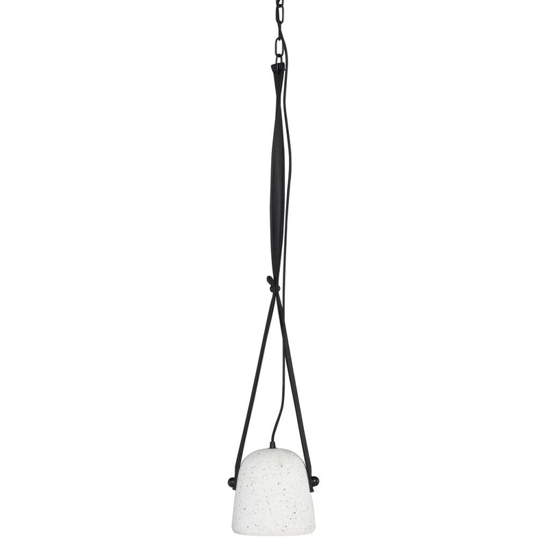 Hanging delicately over a kitchen island, breakfast nook, or dining table, the Anora pendant feels organic and innate. Its gently curved light shade is nestled between two matte black cords, directing a peaceful spotlight from above.