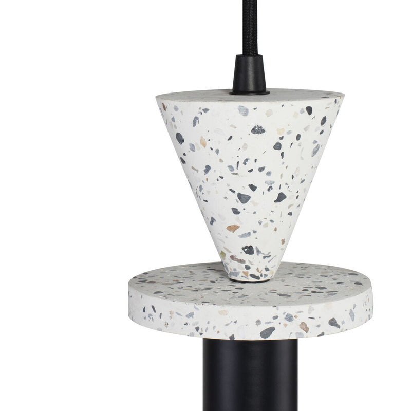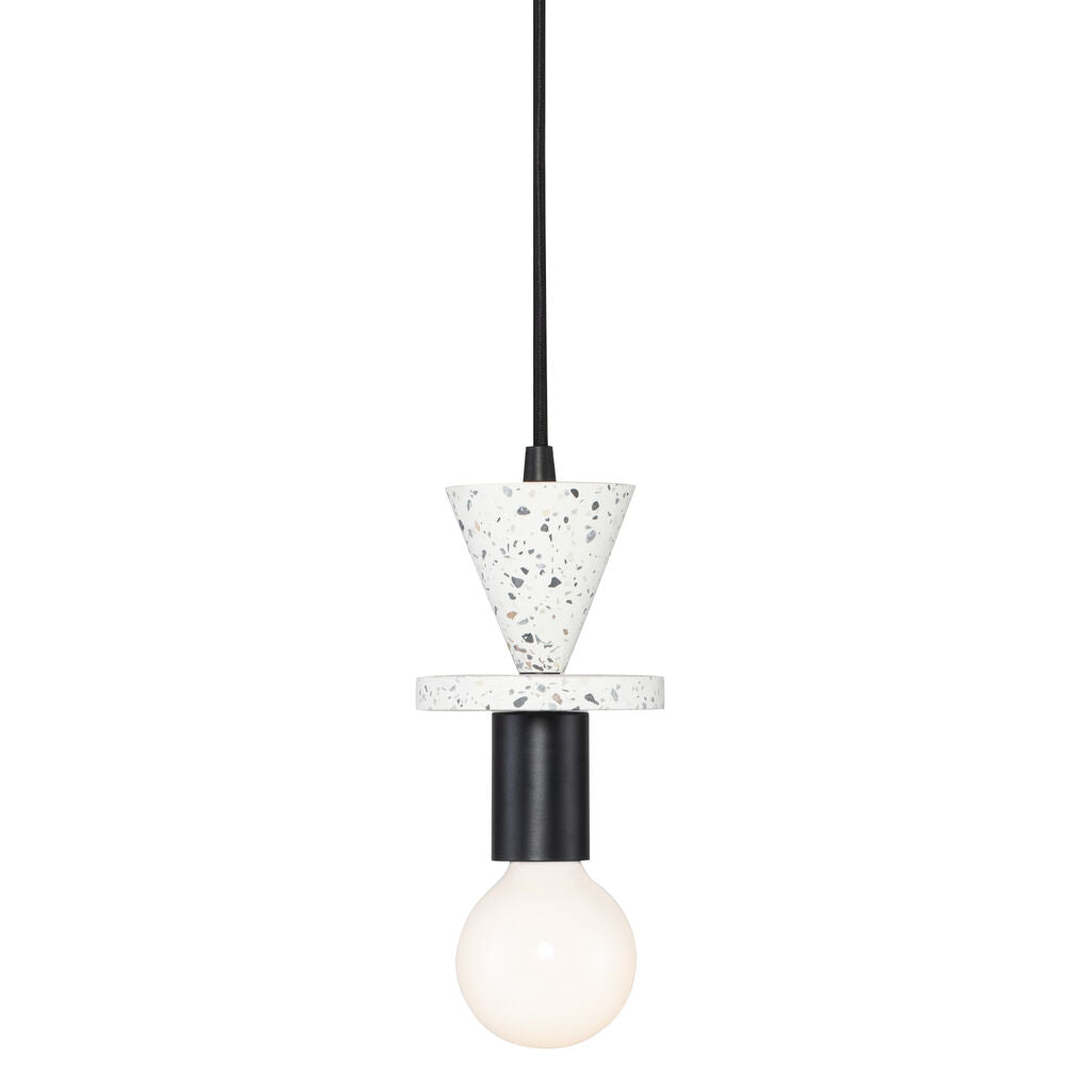 Stacked forms and mixed material sùlike terrazzo and metalùare skillfully used to create the Aura pendant. Its stylish design is reminiscent of a modern sculpture, bringing an artful air to your kitchen, entryway, or bedroom.