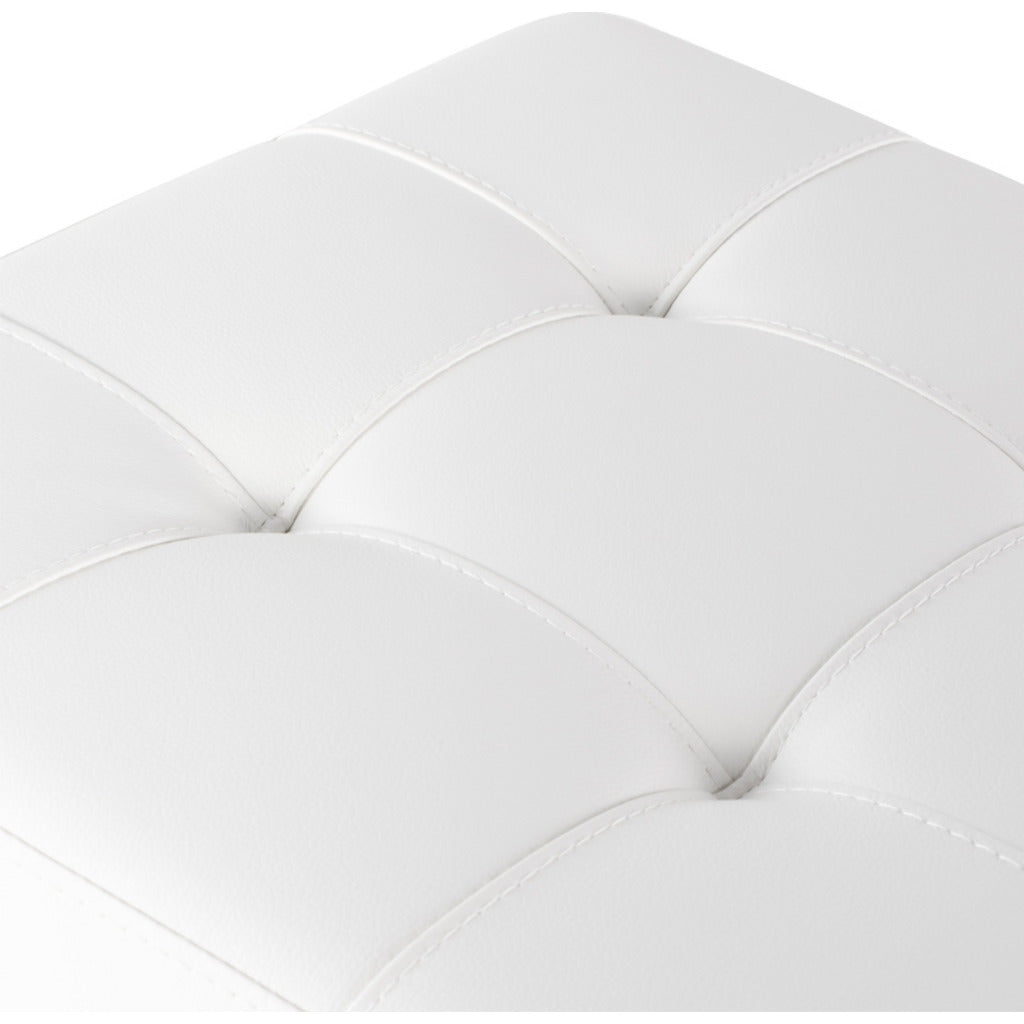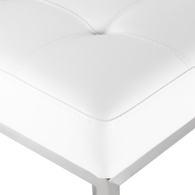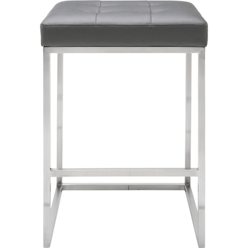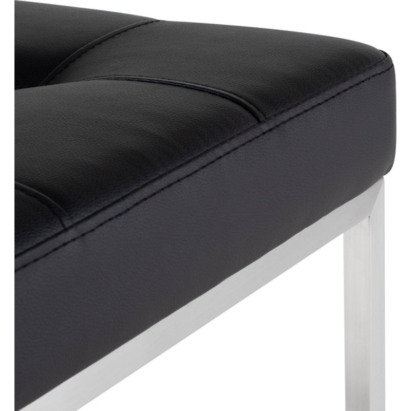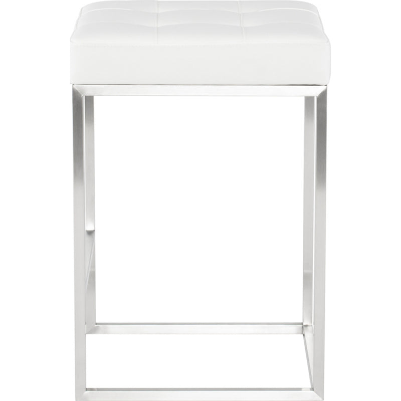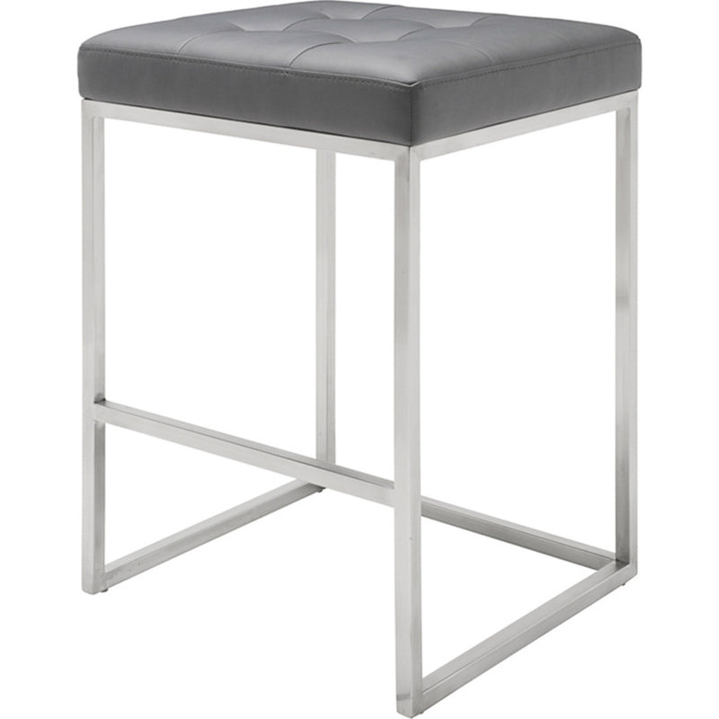 The Chi counter stool is an ideal example of simple elegant modern design. The brushed steel & gold stainless steel frame, including fixed foot rest, uses a bare minimum of materials in its construction creating an exceptionally light effect. The stool is topped with a dense form fitting tufted naugahyde seat cushion for added comfort.
