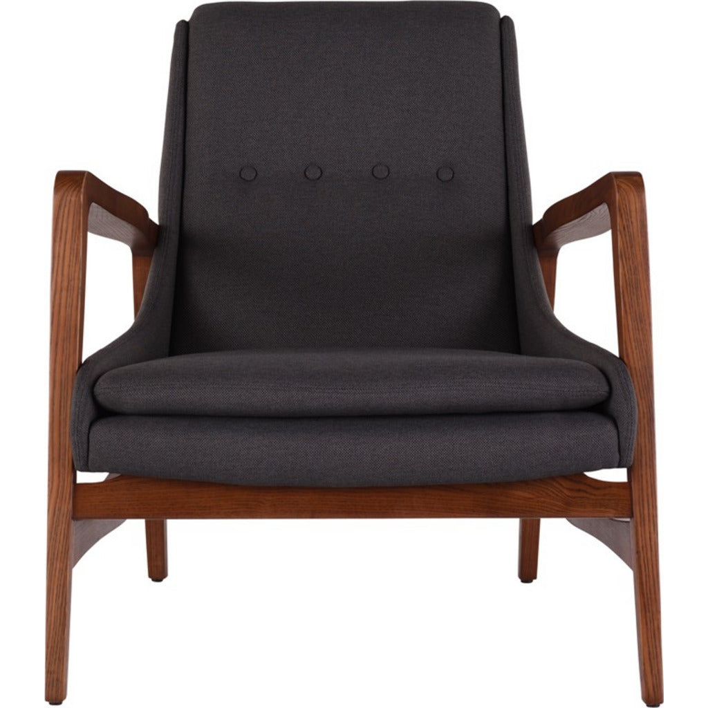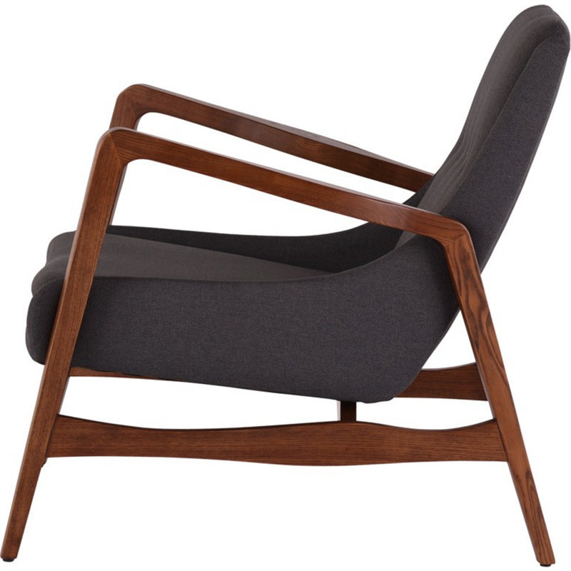 The Enzo occasional chair highlights an elegant, organic, simplicity of design. Inspired by mid-century modernism, the exposed, finely-sculptured Walnut frame embraces a deep seat, covered in neutral grey fabrics presenting a light, graceful aesthetic.
