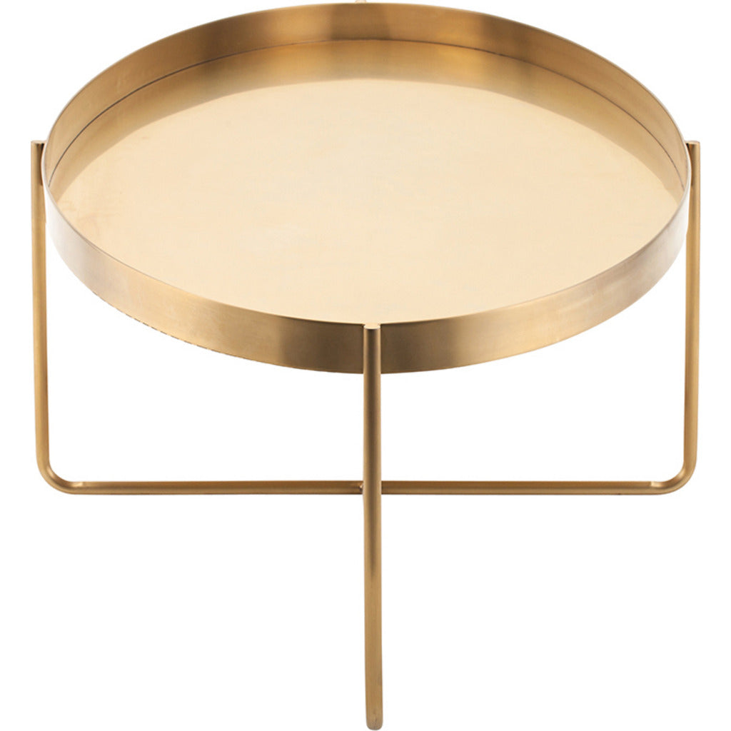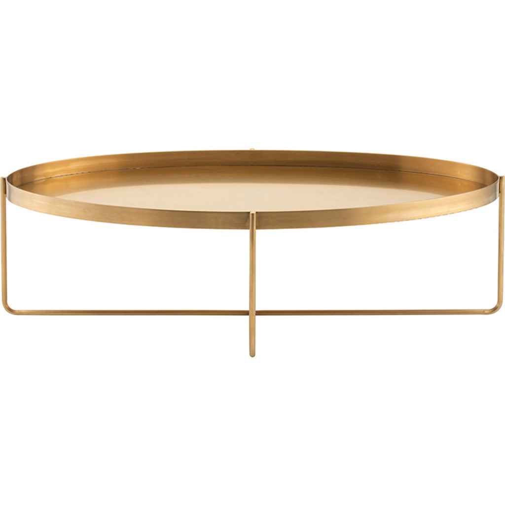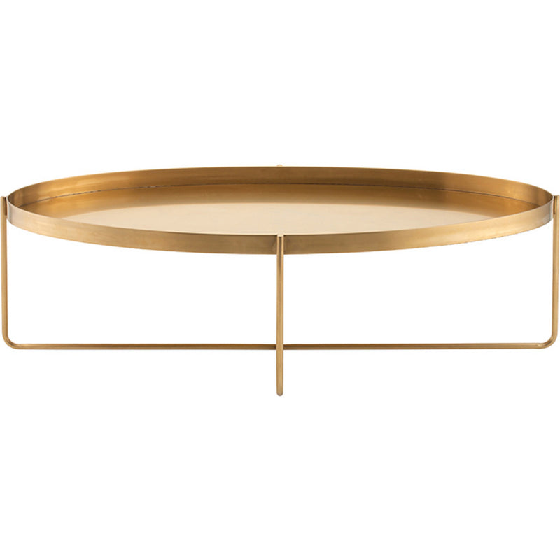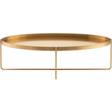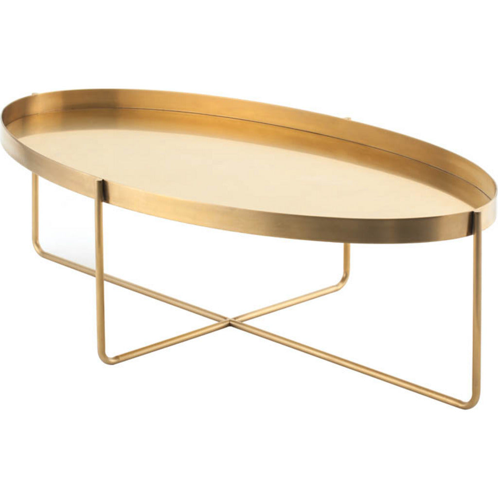 The Gaultier oval coffee table projects a refined sophistication highlighted by an emphasis on purity of form. Finely crafted from lightweight brushed gold stainless steel, the Gaultier radiates lightness and grace.