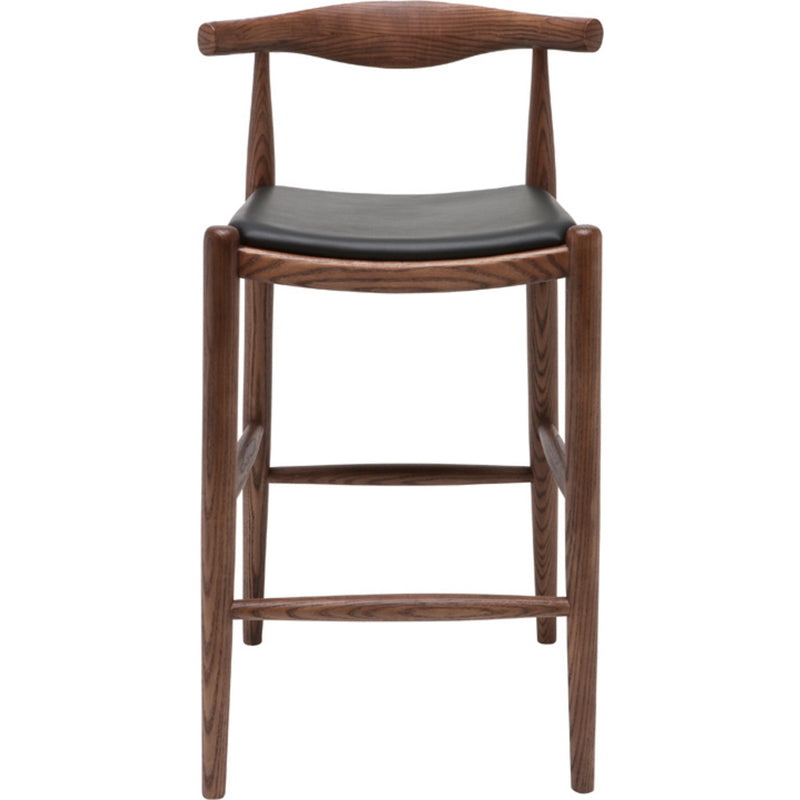 The Maja counter stool embodies the understated elegance of mid-century design. A sturdy traditional stool crafted from solid oak, sculptured and refined to produce a subtle graceful piece of wood work. Finishing the aesthetic, a gently molded form fitting leather upholstered seat cushion.
