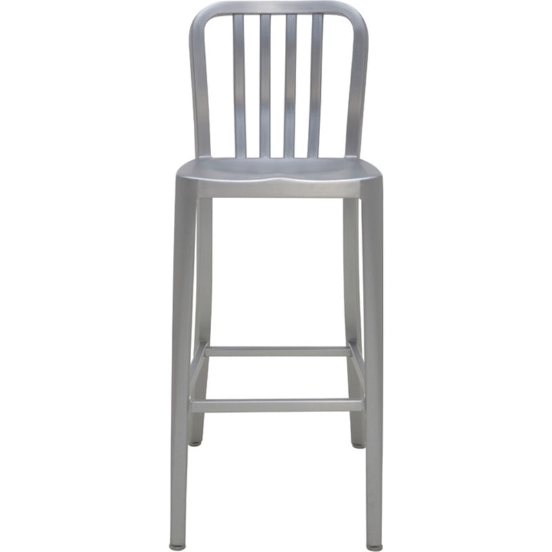 The Soho counter stool updates a classic design with a smart modern look. Using aluminum tube frame construction with welded joints and a oxidized brushed finish, the Soho gives the 20th century design a high concept, 21st century, appeal. The Soho's construction allows for a light-weight multipurpose counter stool (*suitable for indoor and outdoor use.