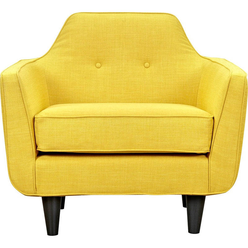 NyeKoncept blends tremendous comfort and a gorgeous contemporary design to bring you this armchair from their Agna Collection. This chair's striking color and unique design incorporate aspects of modern styling, while the wooden legs add a traditional touch. Bring some understated elegance to your home with the Agna Armchair from NyeKoncept.