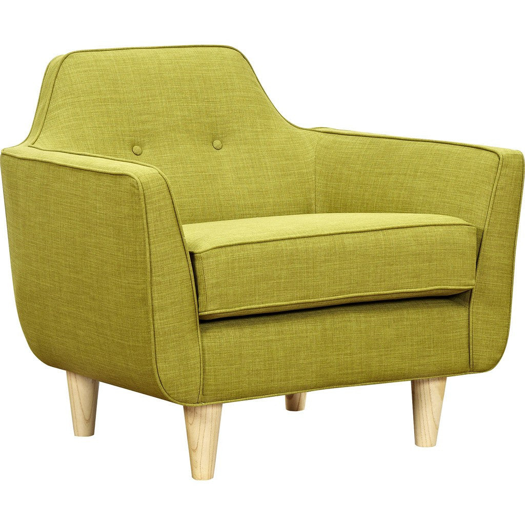 NyeKoncept blends tremendous comfort and a gorgeous contemporary design to bring you this armchair from their Agna Collection. This chair's striking color and unique design incorporate aspects of modern styling, while the wooden legs add a traditional touch. Bring some understated elegance to your home with the Agna Armchair from NyeKoncept.