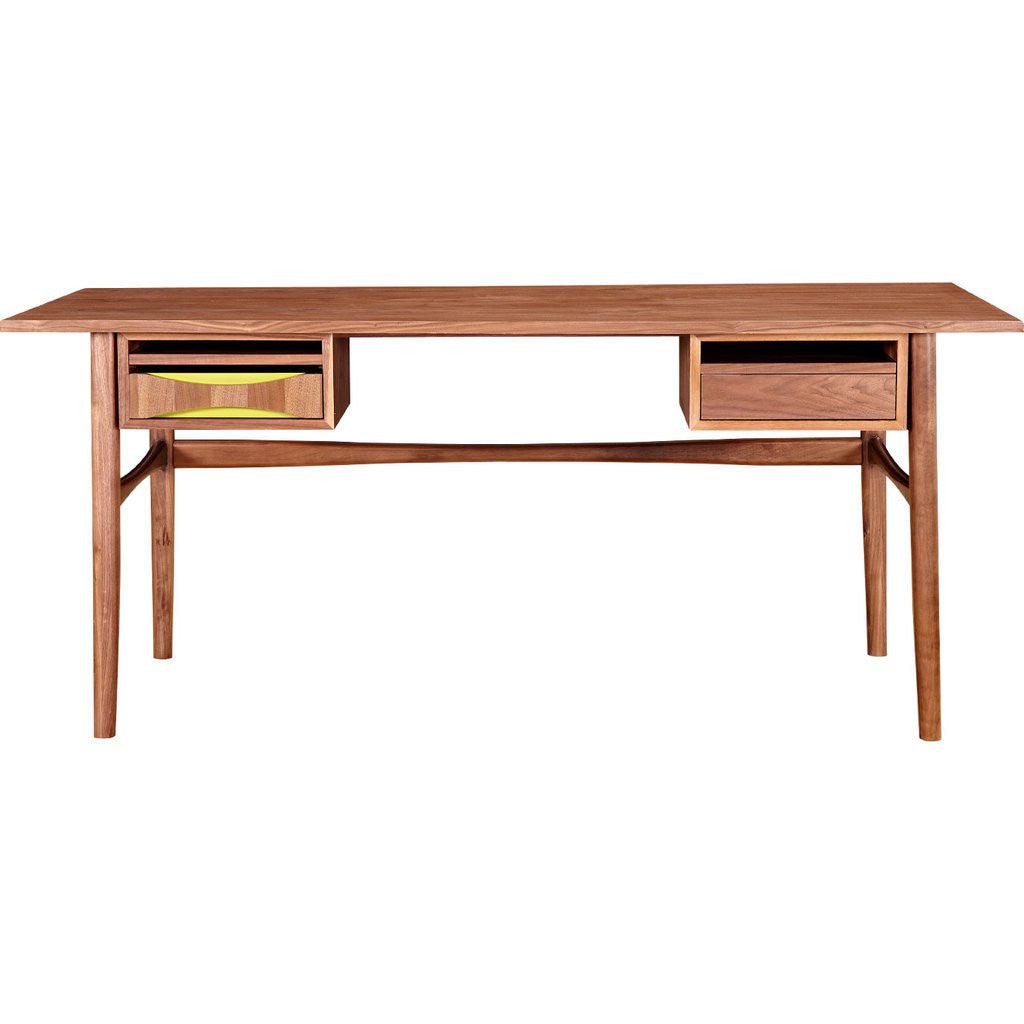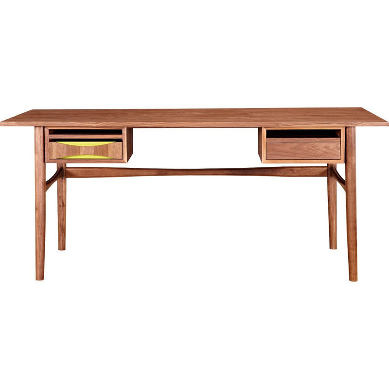 The Hanna desk is a thoughtful combination of utility and the aesthetic of natural wood. The large sized top drawers on either side of the desk offer more than enough storage, while the Hanna's stylish design make it appear as if its floating right in the center of the room. Bring a contemporary desk that boasts quality craftsmanship and superior craftsmanship to your home!