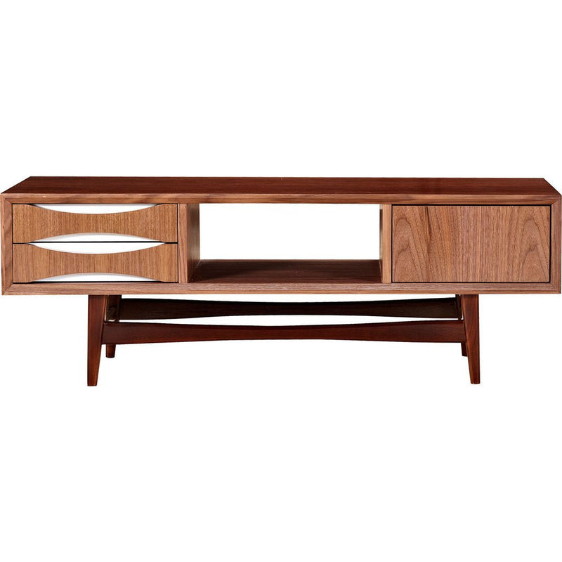 Modern media units call for more than functionality and durability; they need an aesthetic that will add to the atmosphere of the room. And the Hanna Media Unit's natural wood aesthetic does just that. The open air shelving space offers ample room for a game console or DVR, while the two drawers offer more than enough space for remotes, DVDs, and more!