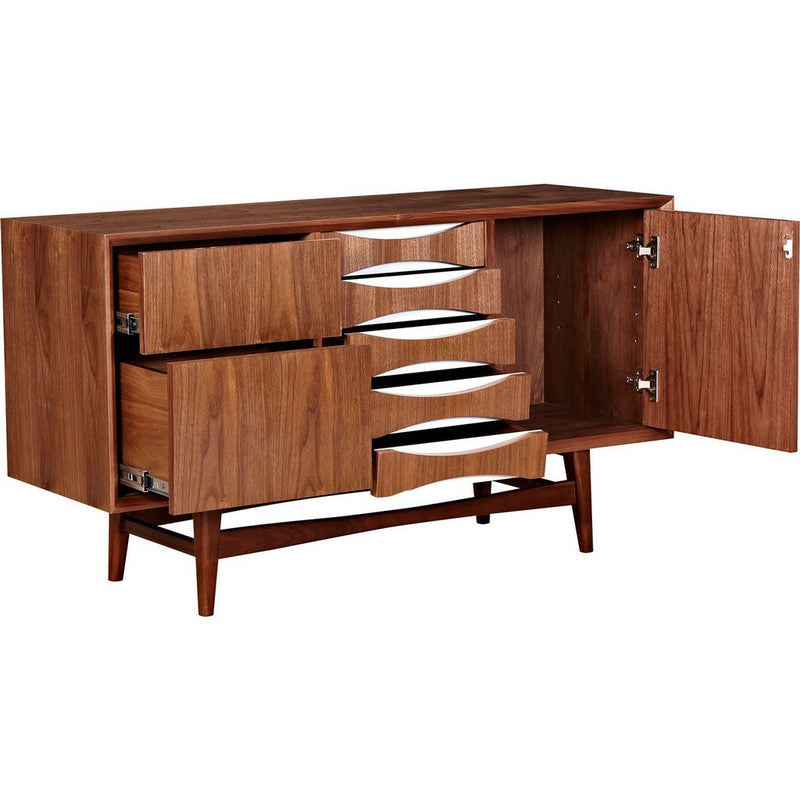 Bring warmth and a natural feeling to any room of your house with this sideboard from NyeKoncept's Hanna Collection. This piece seamlessly blends the aesthetic of walnut veneer with the modern sensibility of a sideboard. The distinctive grain of the walnut veneer adds character that only natural wood can offer, while the sideboard's design offers ample storage space.