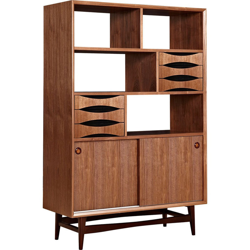 This elegant storage unit from NyeKoncept's Hanna Collection is a prime example of achieving maximum storage with a minimalist design. The open air shelving compartments offer space to show off decorative items or trophies, while the matte finished drawers offer ample storage space. Organize your living space with a storage unit that boasts class and quality craftsmanship!