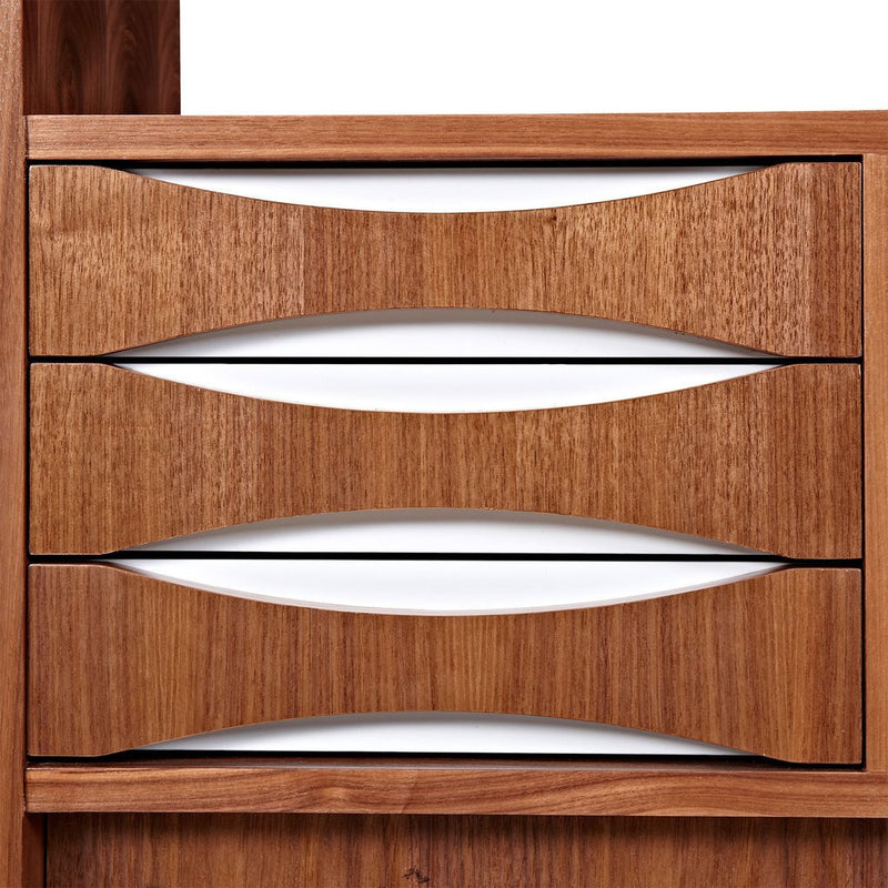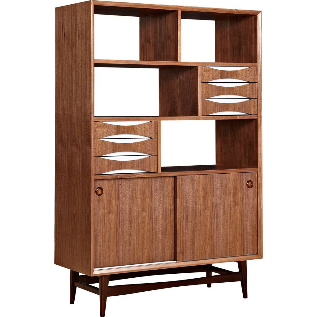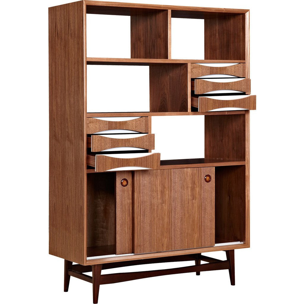 This elegant storage unit from NyeKoncept's Hanna Collection is a prime example of achieving maximum storage with a minimalist design. The open air shelving compartments offer space to show off decorative items or trophies, while the matte finished drawers offer ample storage space. Organize your living space with a storage unit that boasts class and quality craftsmanship!