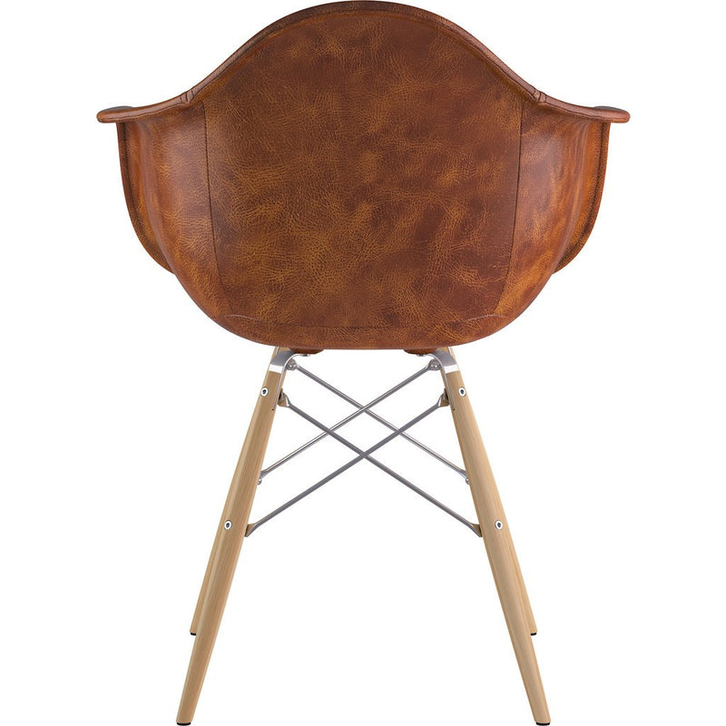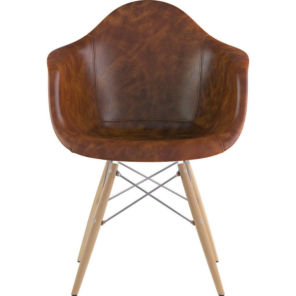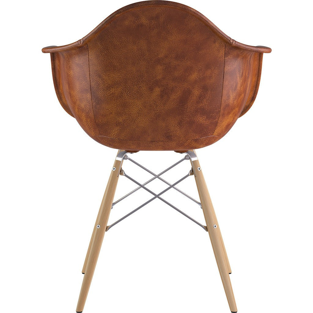 The Dowel Armchair from NyeKoncept's Mid Century Collection is one of their most comfortable and elegant pieces on the market. The Dowel Armchair is a stylish and durable combination of tasteful home furnishing, and quality craftsmanship. The leather body of the chair offers a timeless mid century aesthetic, while the wooden legs add a natural feel. The retro simplicity and tremendous comfort of this chair make it an ideal addition to any living space.