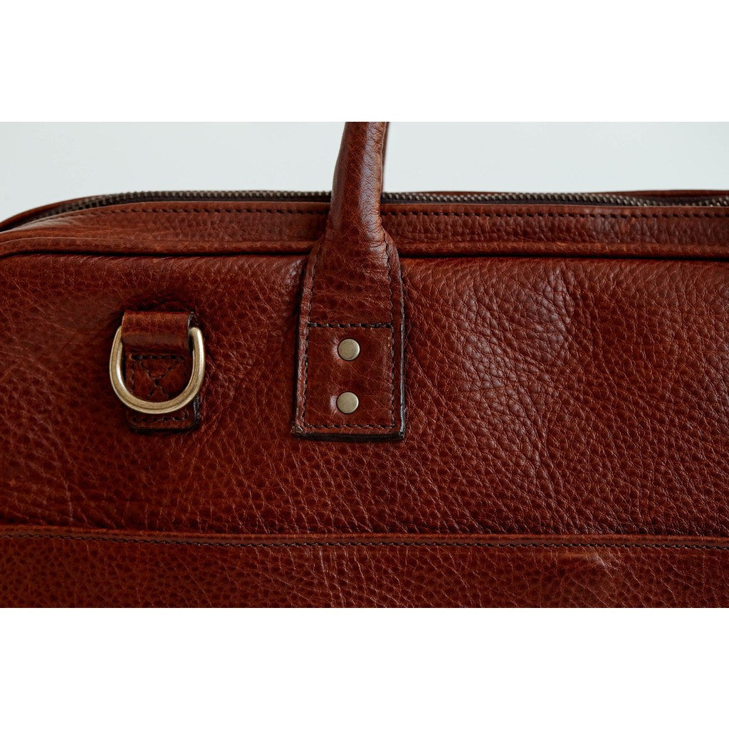 The Kingston Leather Briefcase is handcrafted by ONA with Italian leather. Stay organized with the 15" laptop sleeve and the additional pockets that are perfect for smaller items. This sleek briefcase is the ideal companion for your everyday adventures. Carry over your shoulder using the shoulder strap or change it up and carry it with the leather top handles.