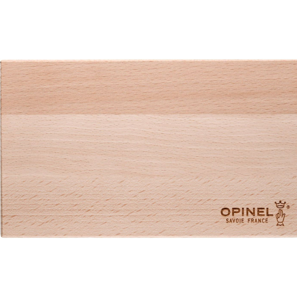 • Handle:  Beechwood from France. Opinel's beech is hard, durable and easy to work. With a homogeneous appearance, its light color varies from yellow to pink. It is characterized by the presence of numerous small, -dark dashes.