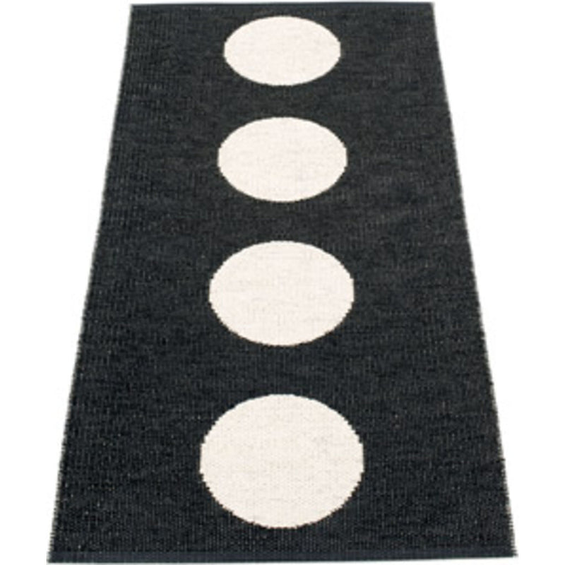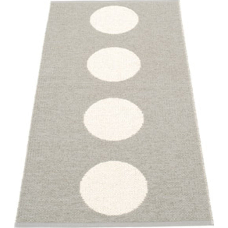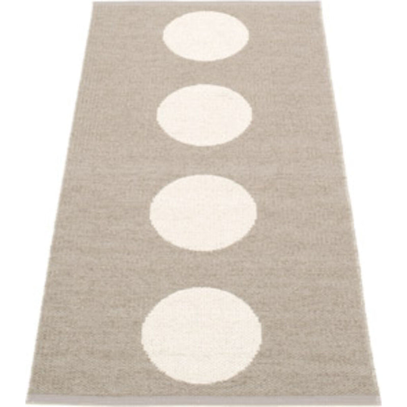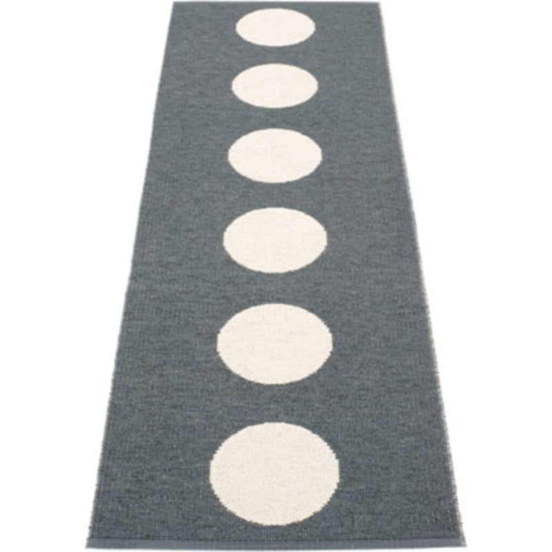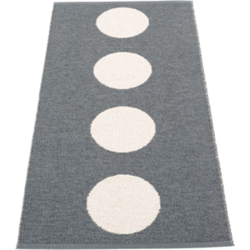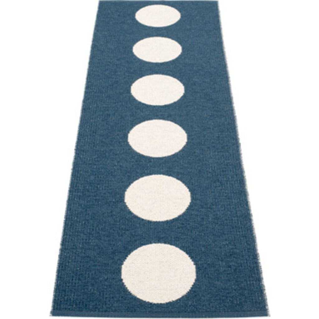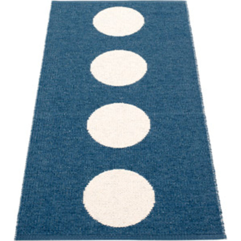 Pappelina Vera is the original plastic rug, crafted with love and pride in Sweden. One row of large circles along the centre of Pappelina's Vera Rug is all that is needed to catch the eye. Fantastically simple design. Woven by hand and brought to life through a close interplay between design and weave. Woven on a traditional loom using wooden shuttles. Non-absorbent and hypoallergenic, Pappelina plastic rugs are easy to clean and machine washable at 30°C. These are woven using two colours together to give a subtle colour combination. Very practical and easy to care for rug in Swedish manufactured, certified PVC. Double folded hemmed edge with strong seam and sewn rubber label. Measurements may vary ±4% as a result of the various craft processes during manufacturing. Pappelina rugs can be used indoor and outdoor. Vera rug is ideal for both contemporary and traditional settings. The modern rug with a maritime striped look can be placed on the balcony, on the terrace or in the living room. Pappelina Vera rugs are beautifully styled, longer lasting, easy to clean, waterproof, mould resistant, dust repellent, fibre free and sterile with no toxin content improving life for asthma and allergy sufferers. Go on and feel the benefit!