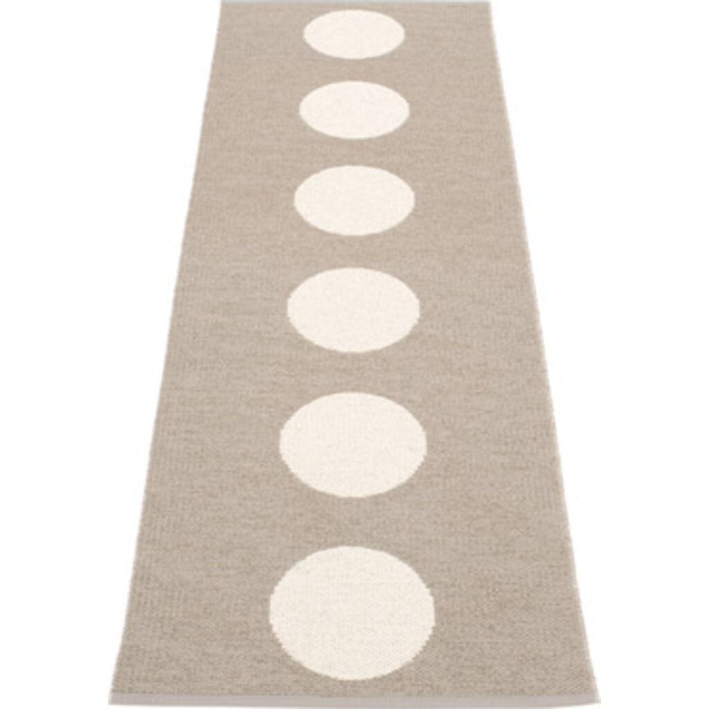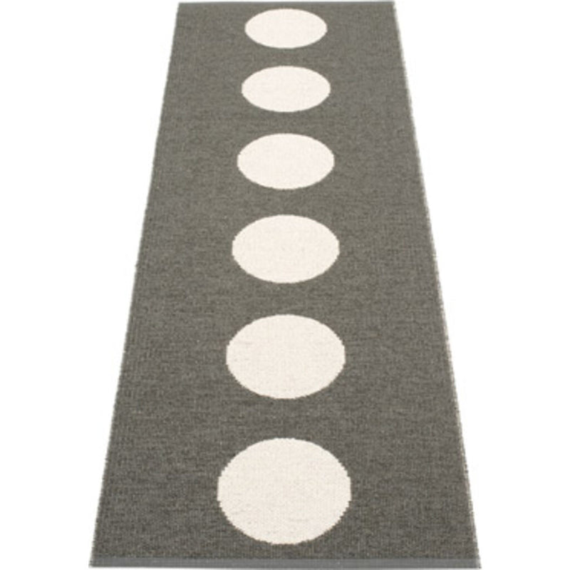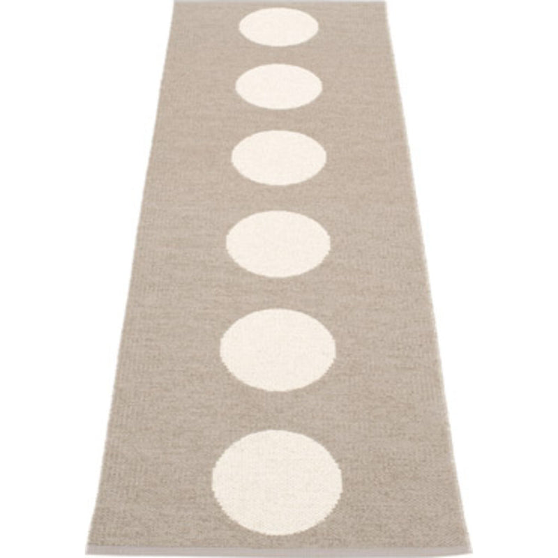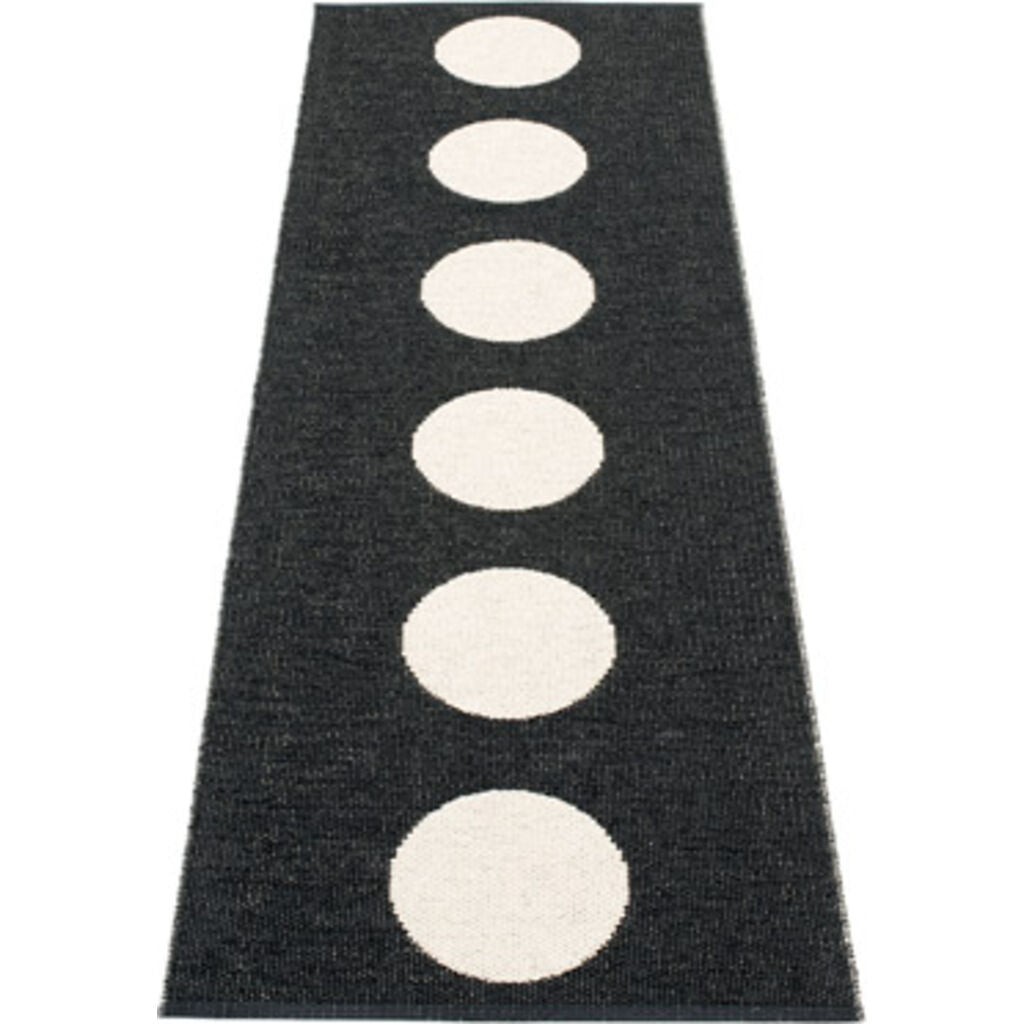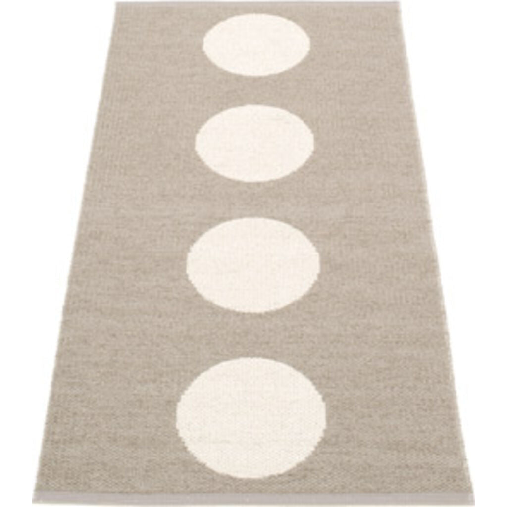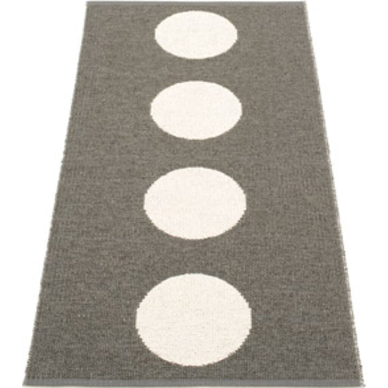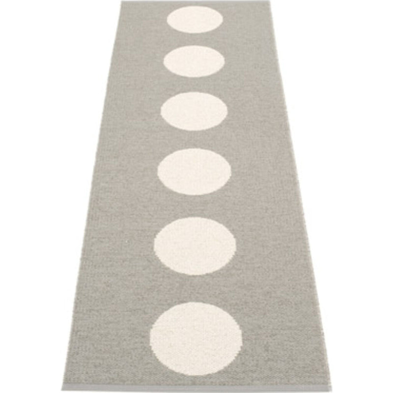 Pappelina Vera is the original plastic rug, crafted with love and pride in Sweden. One row of large circles along the centre of Pappelina's Vera Rug is all that is needed to catch the eye. Fantastically simple design. Woven by hand and brought to life through a close interplay between design and weave. Woven on a traditional loom using wooden shuttles. Non-absorbent and hypoallergenic, Pappelina plastic rugs are easy to clean and machine washable at 30°C. These are woven using two colours together to give a subtle colour combination. Very practical and easy to care for rug in Swedish manufactured, certified PVC. Double folded hemmed edge with strong seam and sewn rubber label. Measurements may vary ±4% as a result of the various craft processes during manufacturing. Pappelina rugs can be used indoor and outdoor. Vera rug is ideal for both contemporary and traditional settings. The modern rug with a maritime striped look can be placed on the balcony, on the terrace or in the living room. Pappelina Vera rugs are beautifully styled, longer lasting, easy to clean, waterproof, mould resistant, dust repellent, fibre free and sterile with no toxin content improving life for asthma and allergy sufferers. Go on and feel the benefit!