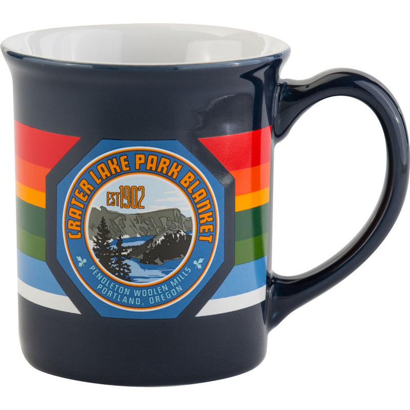 Snuggle up with your hot beverage of choice and show off your love for Crater Lake National Park with this mug from Pendleton Woolen Mill. Crafted entirely out of ceramic, the Crater Lake Mug boasts a striking label that is based on the design of the window decals (bumper stickers) given to park visitors during the 1920's. Thanks to the microwave-safe construction and generous 18 oz volume, the Crater Lake Mug is ready for everyday use!