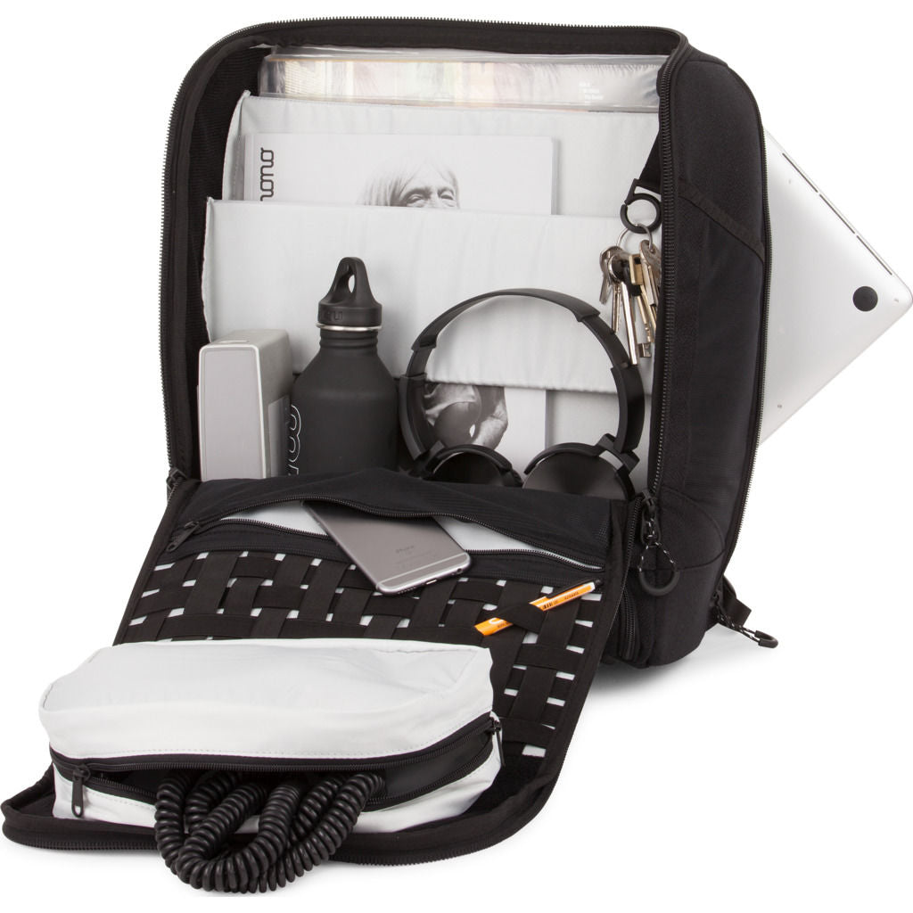 Crafted from 100% recycled PET bottles, the Acid Black DJ Cubik is the stylish, spacious solution for getting to your next gig. Boasting a 25L main compartment, this upgraded version of the Cubik backpack has enough room for larger items like vinyls and mixers while maintaining convenient features like a 17" padded laptop compartment. Removable padded dividers offer protection for more delicate gear, while tech friendly options like a headphone compartment and cable organizer keep you connected.