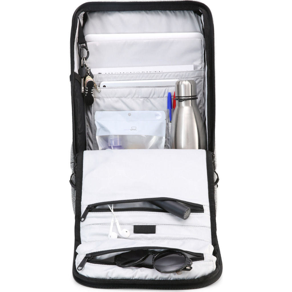The Medium Cubik Backpack in Vivid Monochrome from Pinqponq is crafted using fabrics from 28.9 recycled PET bottles and genuine leather elements on the front. This highly functional daypack features a 15" padded laptop sleeve, spacious main compartment with a two-way zipper, reflective design accents, water repellent fabric and 19 liters of storage - meaning it will stand up to anything your urban commute can throw at it. Zipper and mesh pockets on the exterior offer easy access to frequently used items, while brilliant features like a pen holder, key ring, and padded glasses compartment work over time to keep you organized.