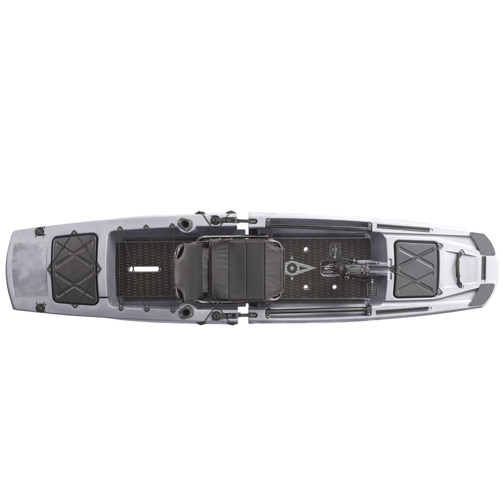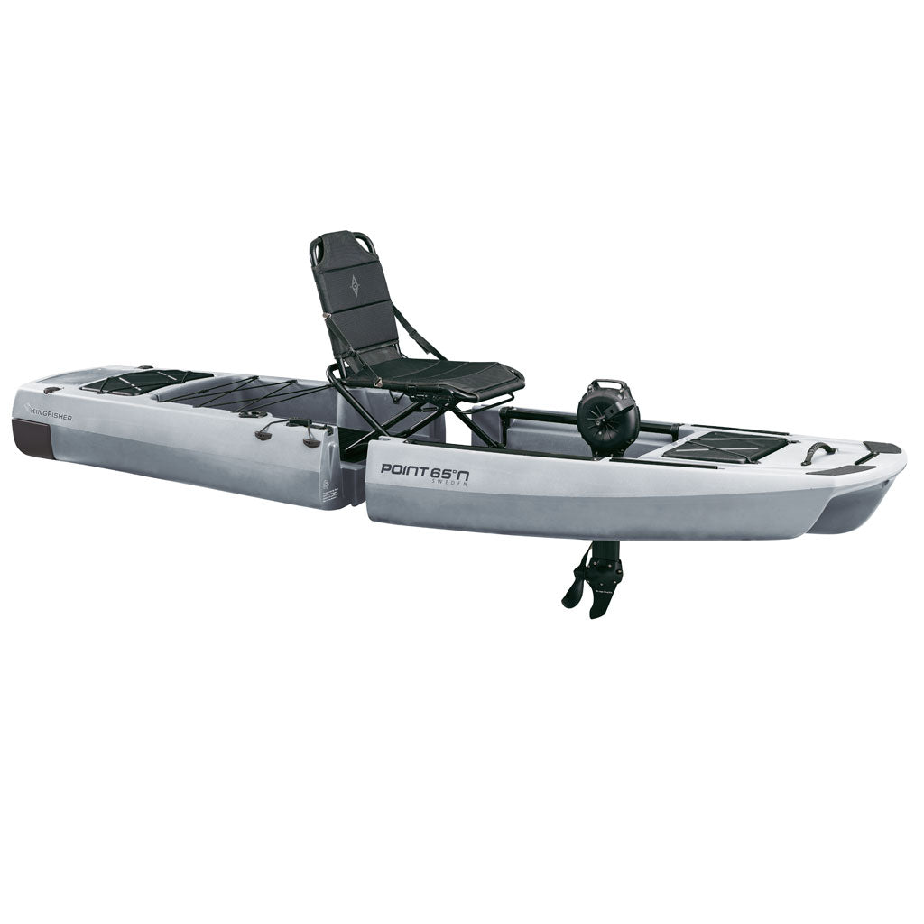 Featuring one of the most comfortable seats on the kayak fishing market, the Kingfisher Game Chair offers a variety of settings to give you a comfortable.The super comfy KingFisher Game Chair, in combination with the kayak's world class stability, speed, and logical accessory positioning, makes the KingFisher a great platform for fishing of all kinds and a serious fishing machine in all water types. The optional Impulse Driver easily pops into its slot in the kayak and effectively propels you forward and backward using leg power. The pedal drive unit is extremely light weight, is fully waterproof and features several gear ratios. It's one of the few pedal driven units on the market that can be driven both forward and in reverse. With your largest muscle group in play, kayak fishing becomes easier and more efficient than ever.The ScubaJet Motor Drive takes you farther, faster with top speeds reaching up to 6 mph at a range of around 20 miles. Its integrated lithium battery lasts up to 8 hours. At only 15lbs. the KingFisher's ScubaJet Motor Drive comes equipped with an intelligent remote throttle that displays your GPS-calculated speed, remaining range and battery runtime. Fully variable forward/reverse functionality allows you to set the throttle to the speed you want so you can be hands-free. It's quiet, low-maintenance and light-weight.