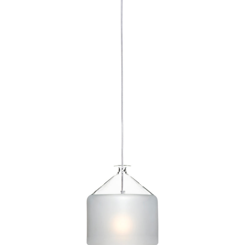 Produzione Privata's Bonne Nuit Pendant Lamp is a unique light. This lamp features a cupola in borosilicate glass that is partly sandblasted and partly transparent. While it may appear that this should be placed on a table this lamp is actually hung by a single wire that passes through the cupola chimney. A great lighting fixture for your home! It comes in two different sizes so you can get the one that works best for your space.