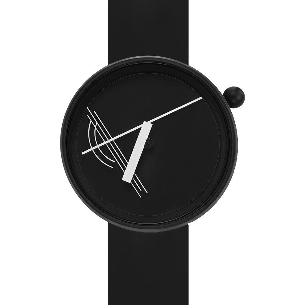 Inspired by Wassily Kandinsky's Diagram 17 drawing, Denis Guidone designed the Diagram 17 Watch. Kandinsky was an influential Russian painter and an art theorist known for his abstract work. Projects Watches brings Guidone's beautiful design to life with a black dial, Japanese Quartz Movement, water resistance of up to 5 ATM and a silicone band. The Diagram 17 Watch highlights the concepts of Gestalt psychology by combining straight, curved and angled lines for the hands.