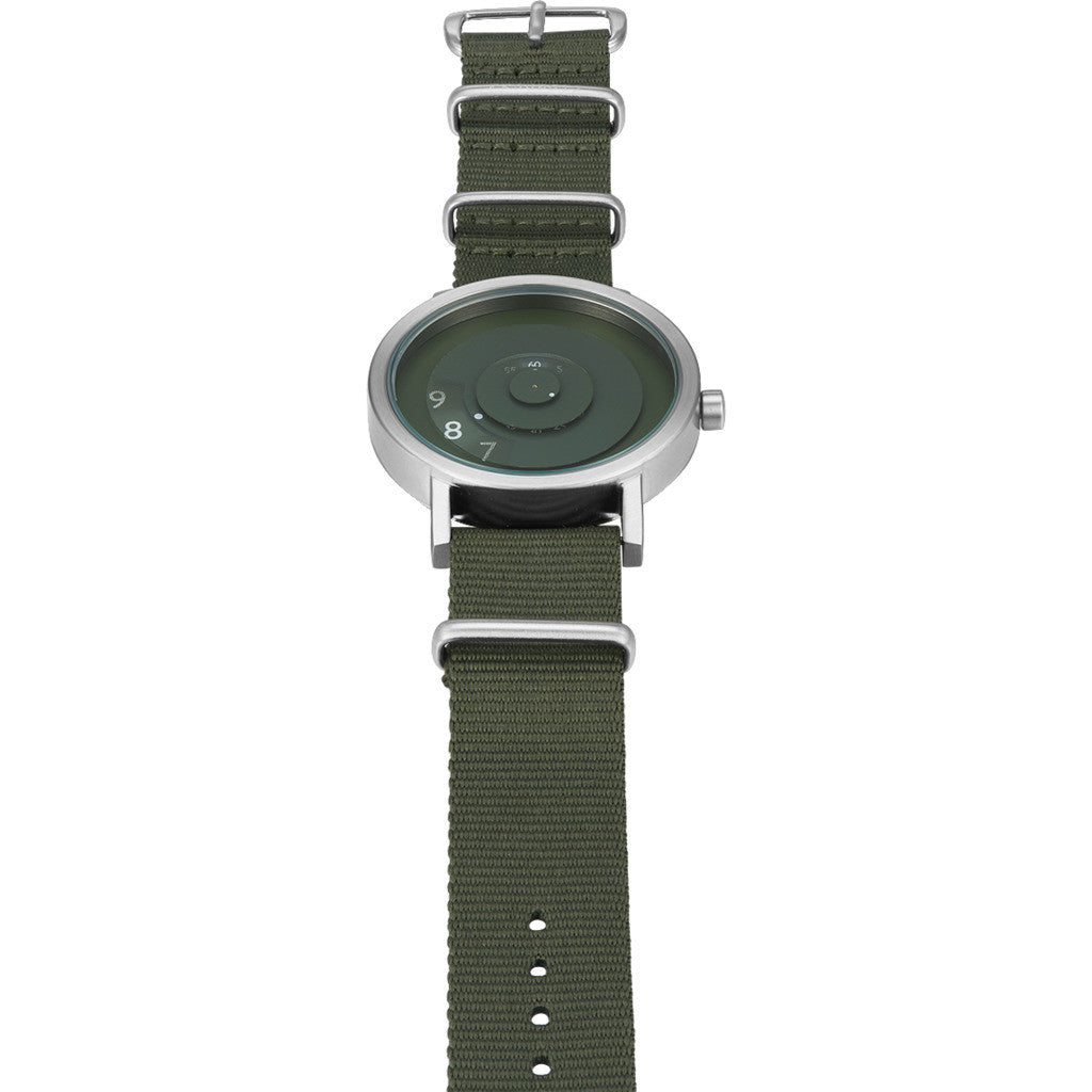 The Reveal has been a longstanding icon in the Projects Watches collection. The new Green Reveal Watch is not just a mans watch, but a watch for anyone and everyone. It is the perfect addition to any outfit, it is a larger bolder style that is sure to make a statement. If you look carefully you can see the old time fade out as the new time fades in. Time is always present, and this watch will remind you of that.