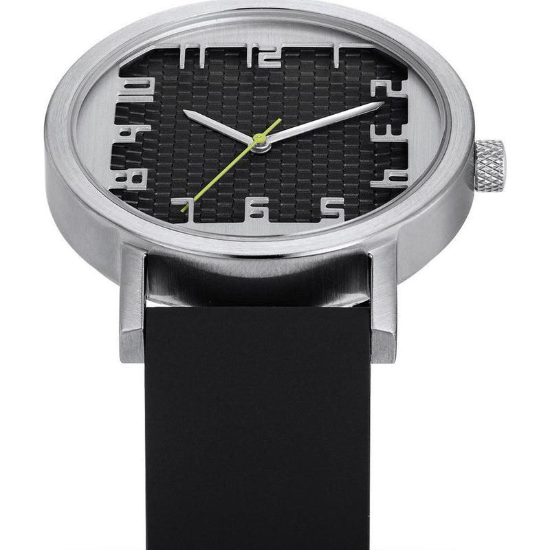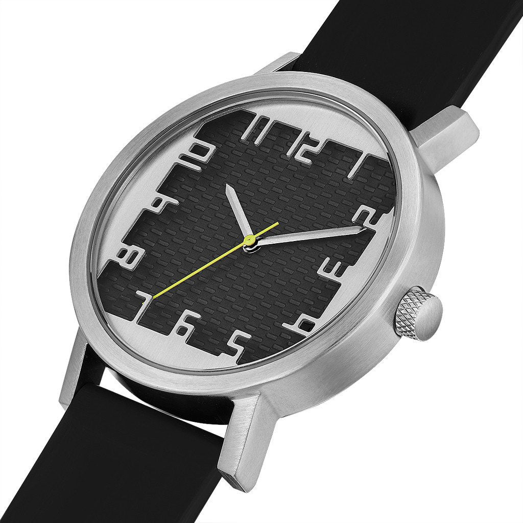 Designed by Architect Michael Graves, Projects Watches now brings you the Mado Watch. In Japanese, the word mado means window. The face of the Mado looks is constructed with a silver case that extends out to make a square window-like shape. The numbers are molded in metal for a unique look. Finished with a sleek leather strap, the Mado is perfect for everyday wear.