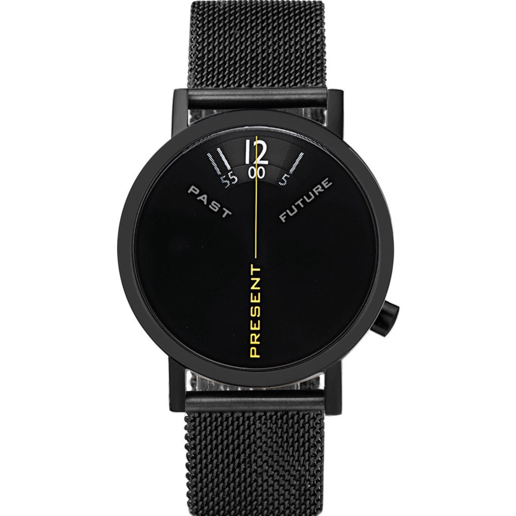 The Daniel Will-Harris Past, Present & Future Watch is a unique timepiece that beautifully reminds you that "there is no time like the present." Design by computer graphics pioneer Daniel Will-Harris, the watch teaches us to see only the present time:what's past is past and the future doesn't exist yet, the time is now. At once coolly minimal and warmly conceptual, the Past, Present & Future watch is a meditation on time; Time is always in the present.