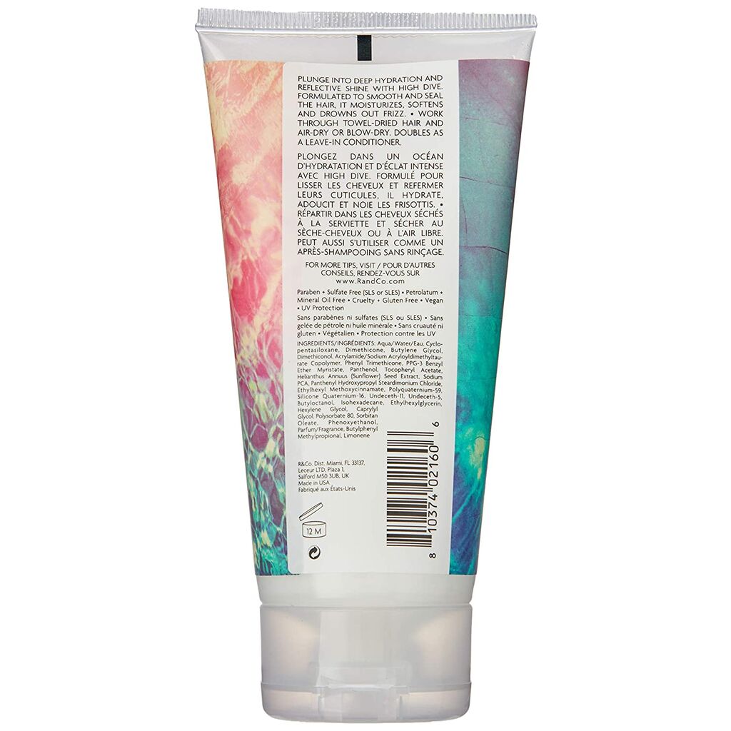 Plunge into deep hydration and reflective shine with HIGH DIVE. Formulated to smooth and seal the hair, it moisturizes, softens and drowns out frizz.