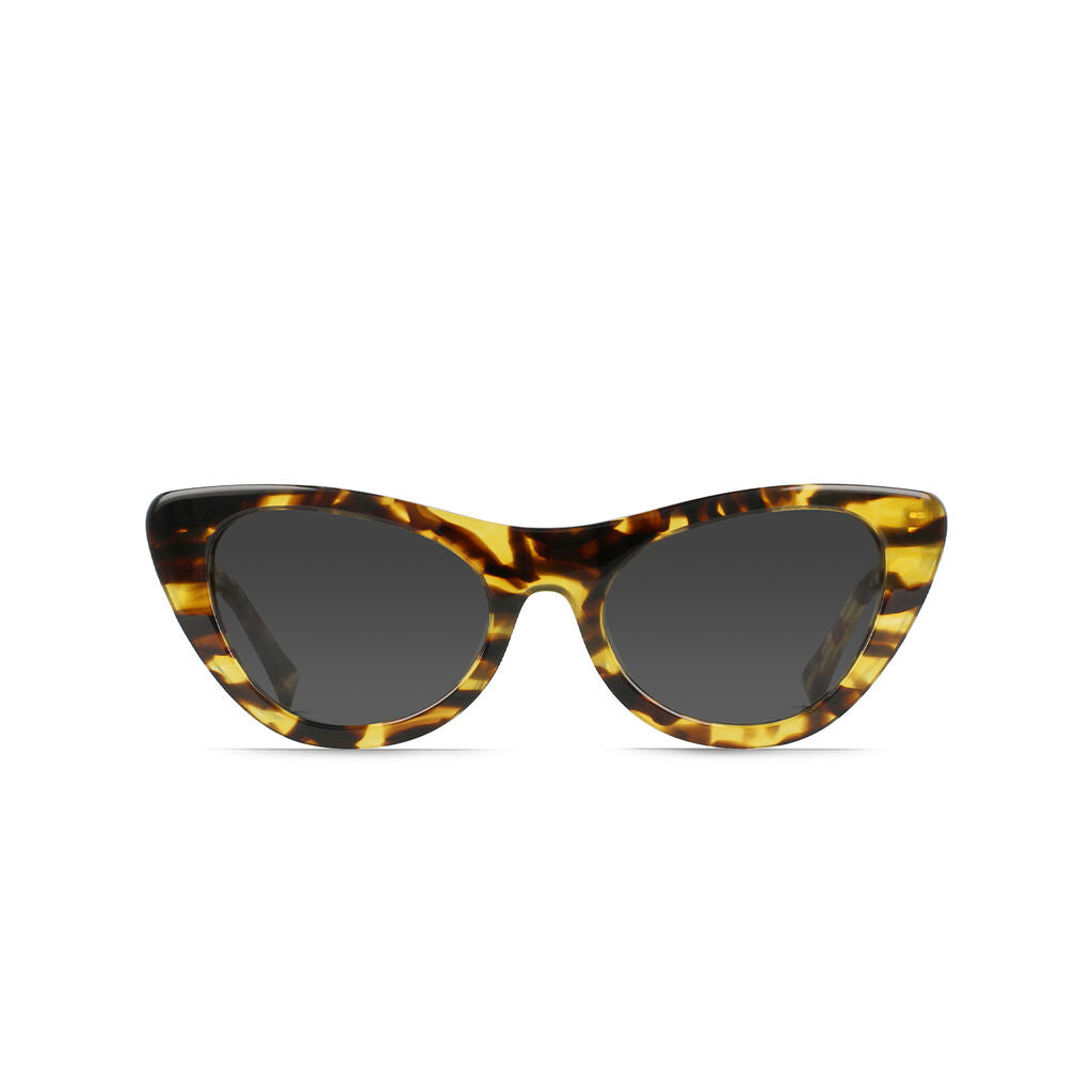 Fulfilling all of our needs for a modern, upswept shape, we meet Flora. Flora is a retro inspired acetate frame with a sleek, flat front shape. Throwing us into the future, Flora features personality and character matched only by its wearer.