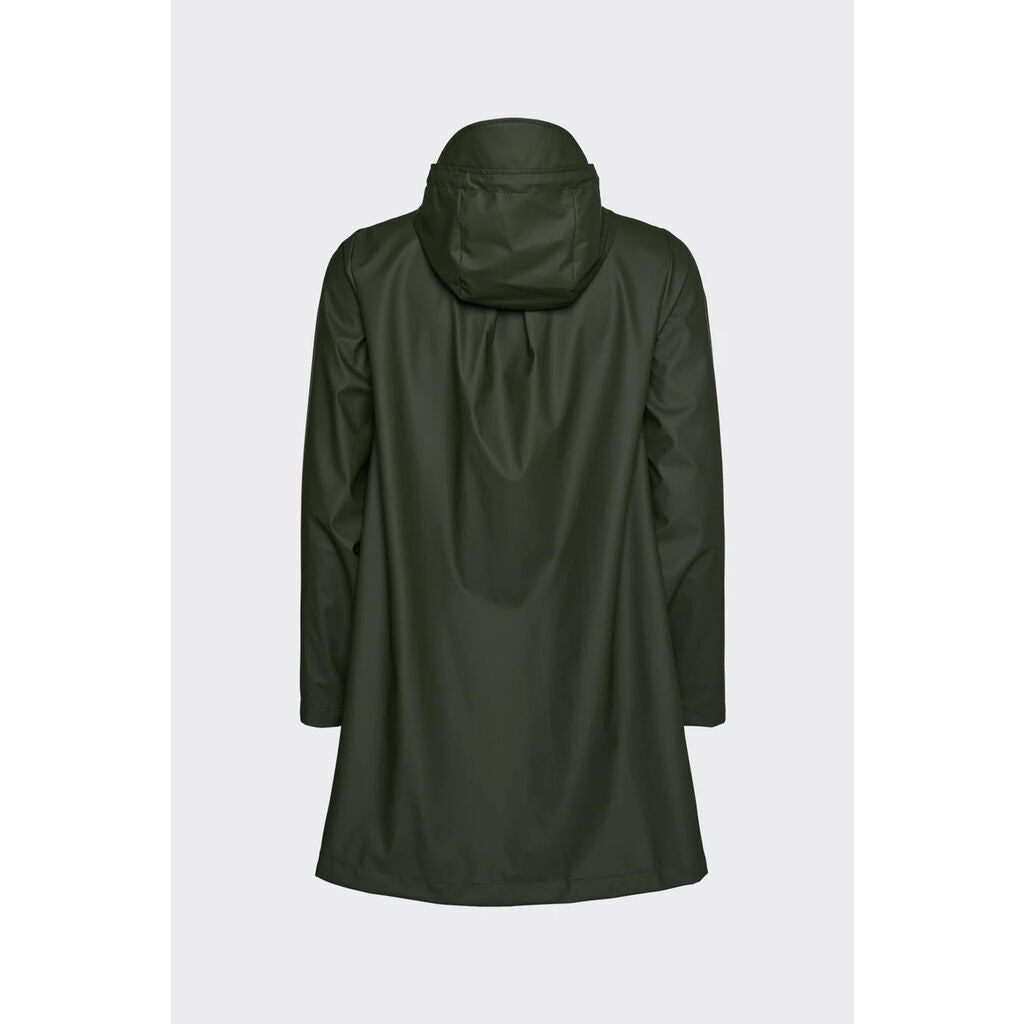 A-line Jacket is a women's raincoat characterize by its A-shaped silhouette that gradually builds in volume from chest to hem. A-line Jacket features a drawstring hood with built-in cap, two side pockets and snap adjustable cuffs. The jacket is completed with hidden snap buttons and a front placket. This waterproof jacket is cut from Rains' signature PU fabric and features ultrasonically welded seams. The finish is lightweight with a soft feel and elegant drape.