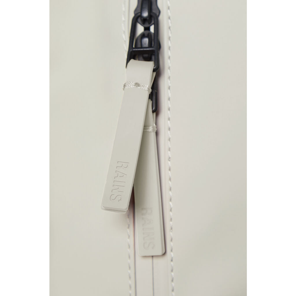 Base Bag is Rains' interpretation of the classic daypack. The design delivers a clean silhouette built around its main form and prominent front pocket. This waterproof rucksack holds an internal laptop pocket and spacious main compartment. The silhouette is finished with a large carry handle and TPU zip pullers. Base Bag is cut in Rains' signature waterproof PU fabric, engineered for carrying strength, durability, and a smooth feel.