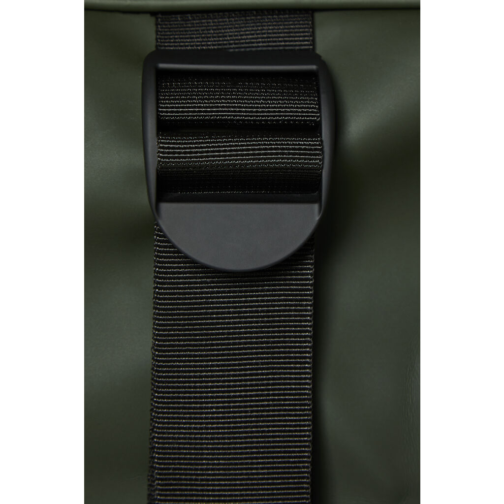Rains present a multi-functional mountaineer duffel bag that has everything you need both in style and practicality. Made from 100% polyester with a durable polyurethane coating which makes it water-resistant and durable. It has a U-shaped single main compartment with a zipped opener, compression webbing strap, and buckle closures that give huge storage space. This waterproof duffel bag is characterized by its boxy silhouette and sporty details. Whether you're going on an adventure out in the wild, stomping the city pavements, or just on campus/at work this duffel will be the perfect choice for you.