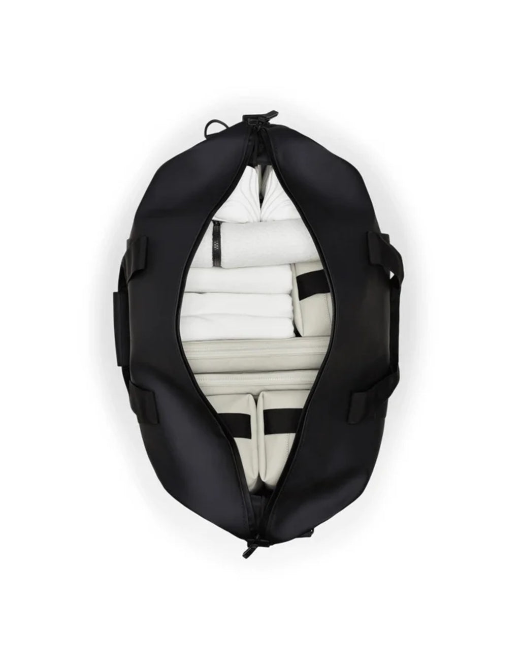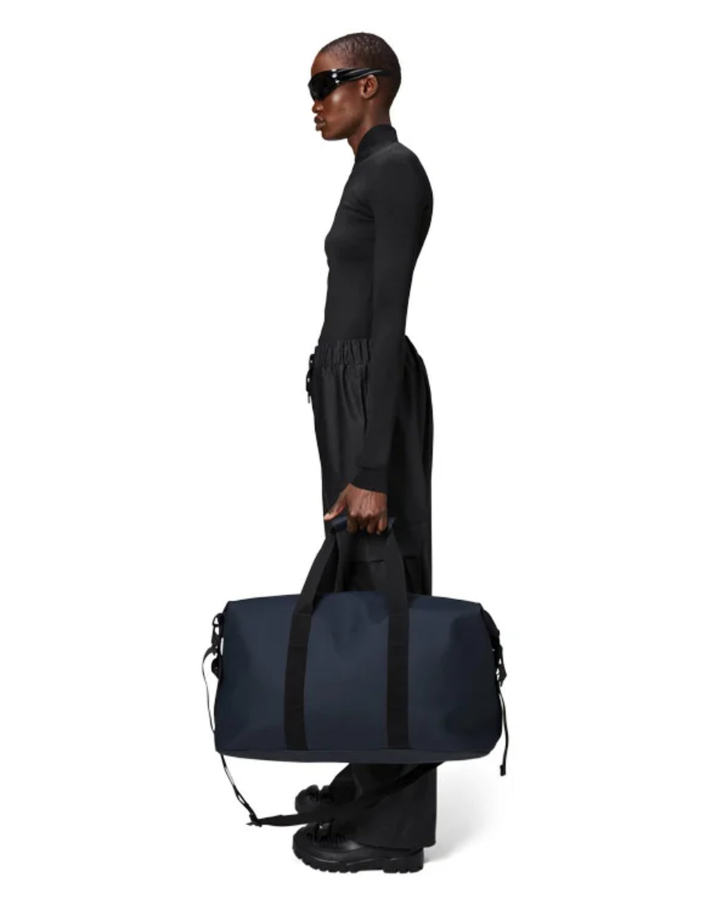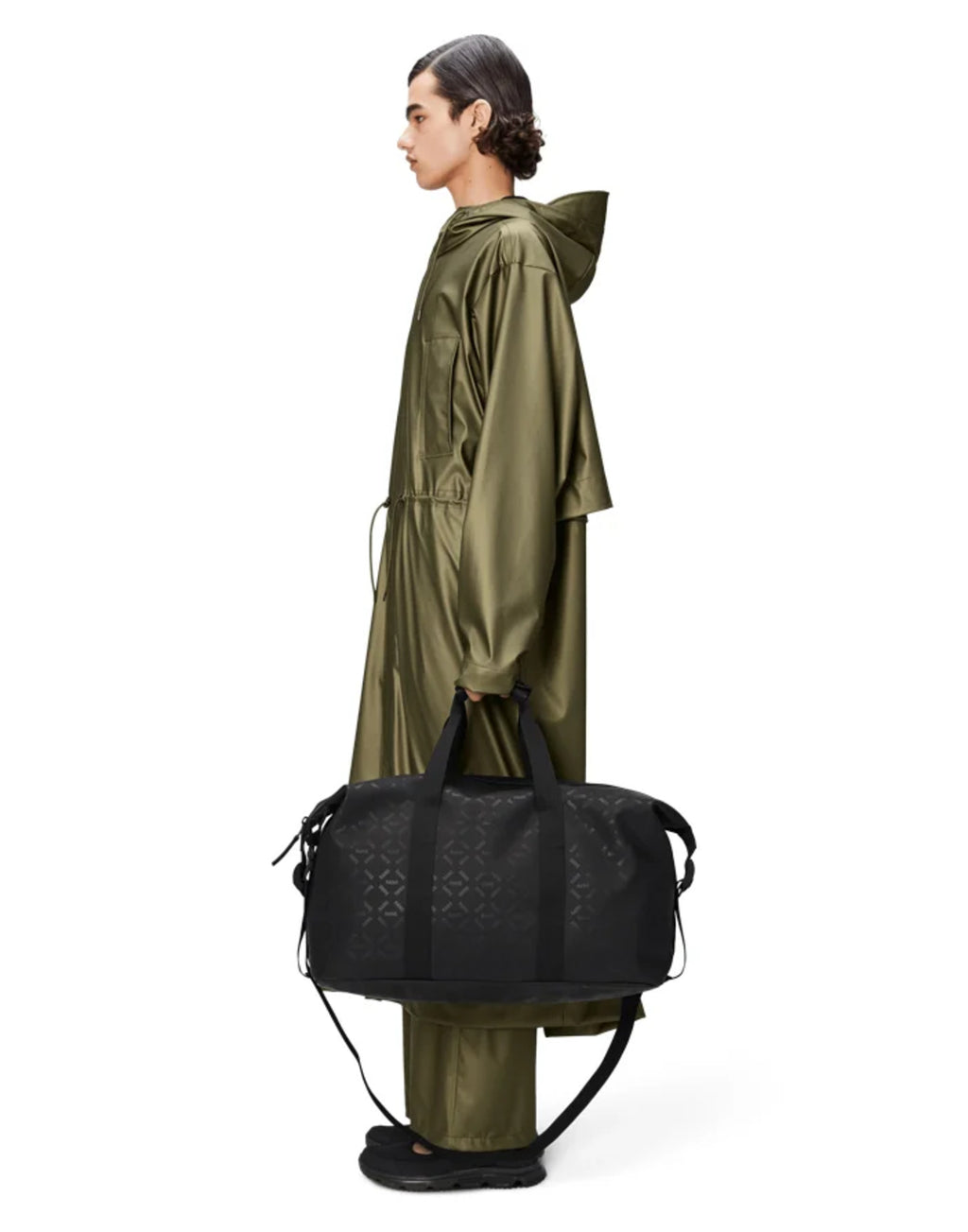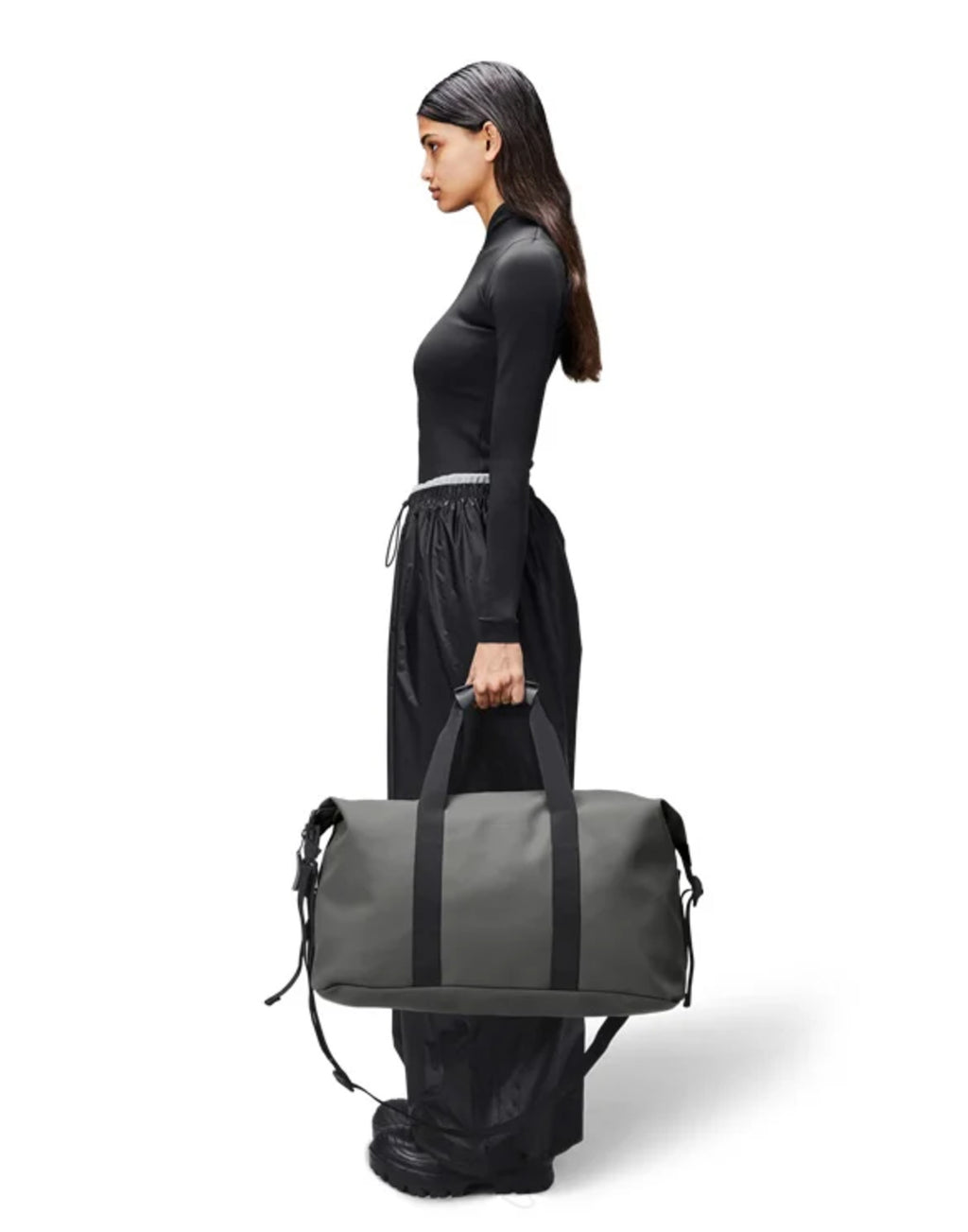 Rains Hilo Weekend Bag is a take on the essential overnight bag – one of three available sizes. The travel-favorite is clean and contemporary, balancing Rains waterproof fabric with signature strap and hardware details. Open the coated full-length zip to find a spacious single compartment – room for clothing, tech and more. Once packed, secure belongings via the silhouette’s side-mounted compression straps. Hilo Weekend Bag is constructed from Rains signature waterproof PU fabric, engineered for carrying strength, durability, and a smooth feel.