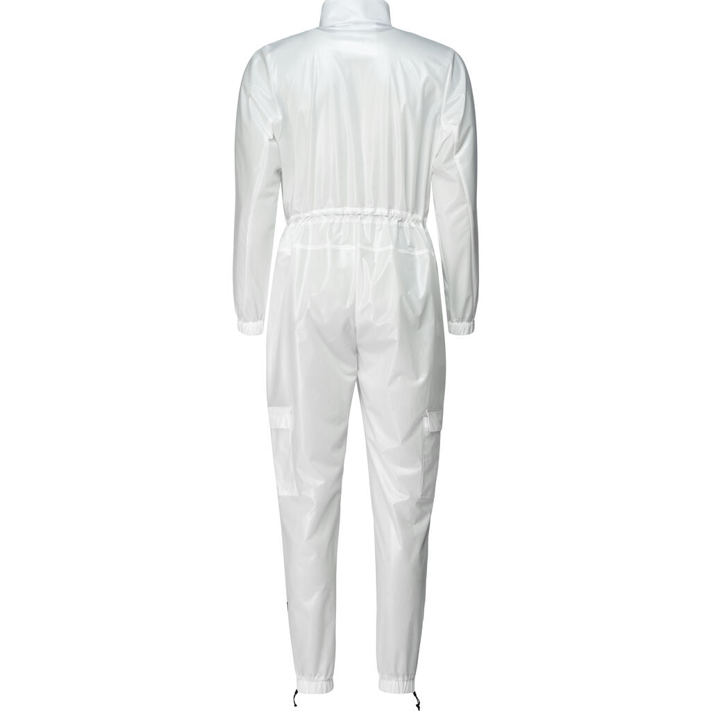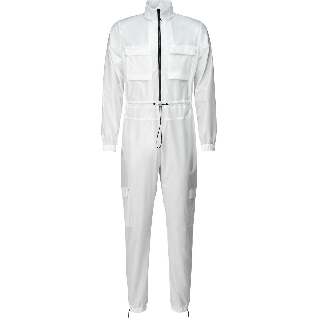 This unisex, full body suit is constructed from waterproof fabric, offering neck to ankle coverage in wet-weather conditions. The style features a front zipper opening, cargo pockets on the chest and legs. adjustable drawstring foot openings, and an adjustable elastic cord at the waist. Ultralight Jumpsuit is constructed from RAINS’ signature ultralightweight fabric that is both waterproof and breathable. The unique fabric is achievable through an ultralightweight, knitted backside and a semi-shine, transparent PU surface. The combination results in a sheer, semi-shine fabric that’s nearly weightless when worn. Yet still waterproof.