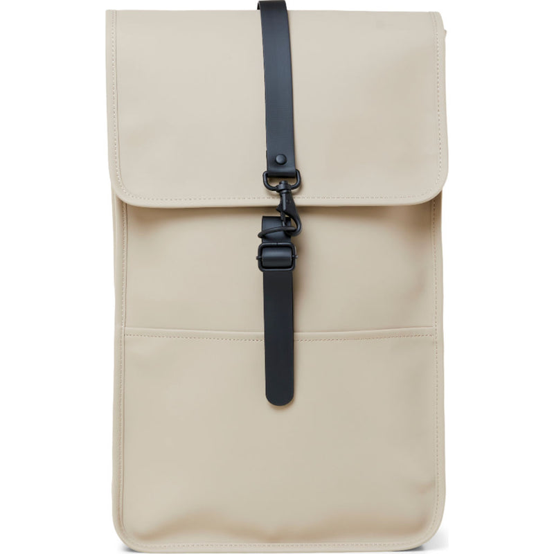 Backpack is a true Rains classic made from a water-resistant fabric with a matte finish. Fully lined, this minimalistic yet modern rucksack has an inside laptop pocket, a spacious main compartment and a hidden phone pocket on the backside. It is completed with magnetic closings, carabiner details, and adjustable straps.