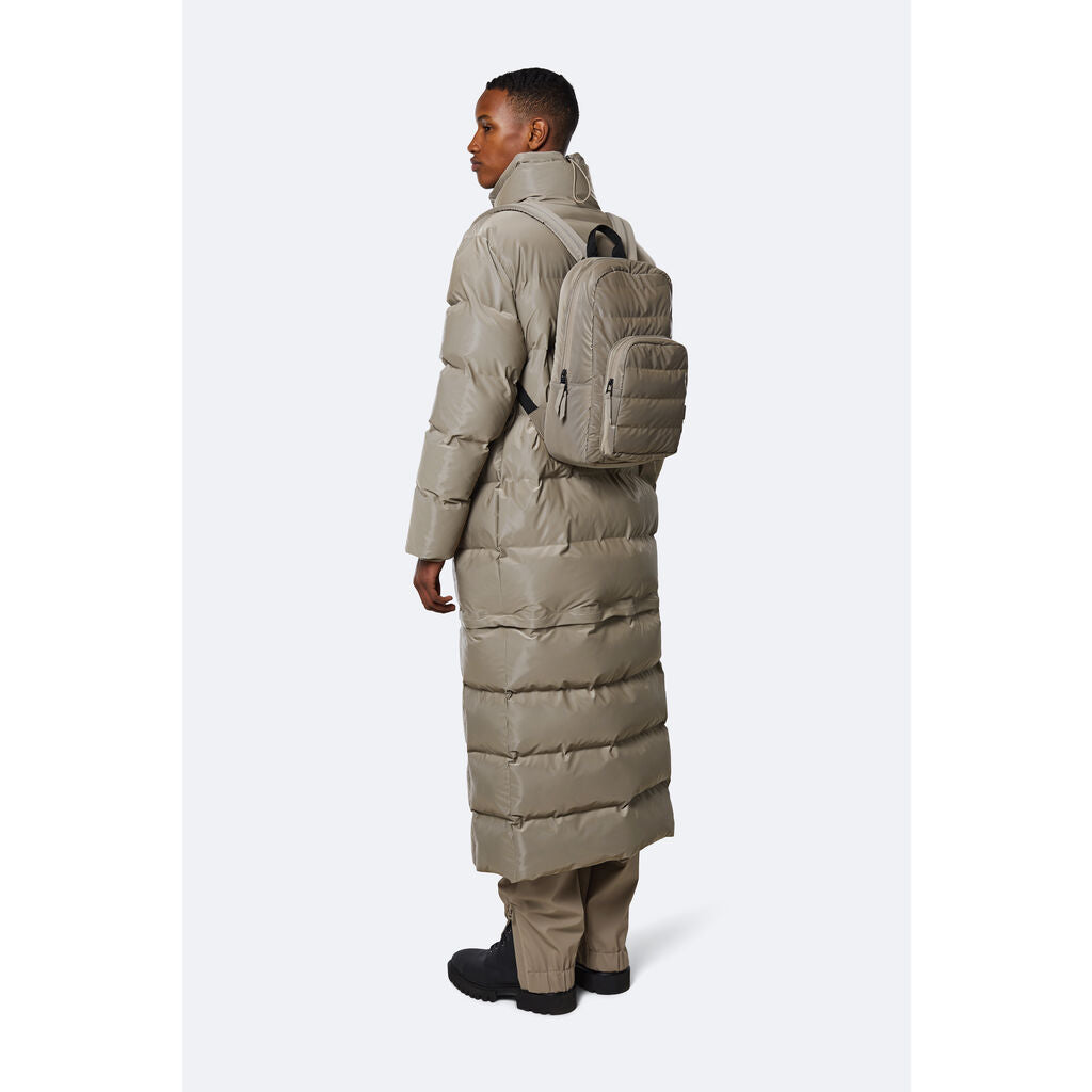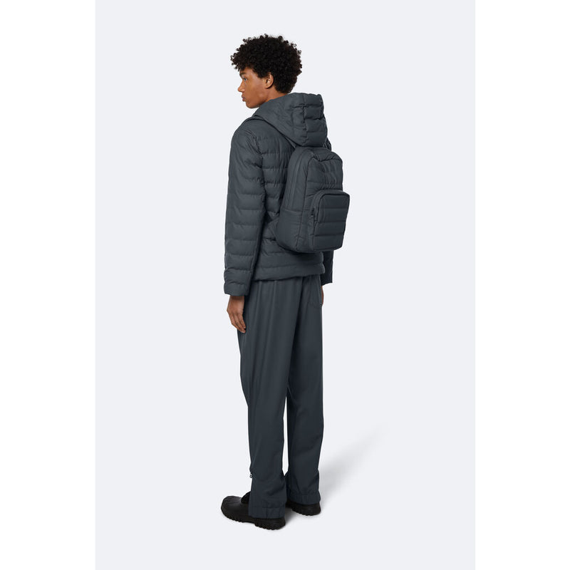 Base Bag Mini Quilted is the padded version of Rains Base Bag Mini with a silhouette inspired by the classic collegiate daypack. The design’s is cut from Rains stitch-free quilted fabric with a waterproof PU coating. The lightly padded fabric gives the bag a soft feel. The waterproof backpack has soft padded backstraps, coated zips, a spacious main compartment. The design is finished with an internal 13” laptop pocket and an oversized outer front pocket.