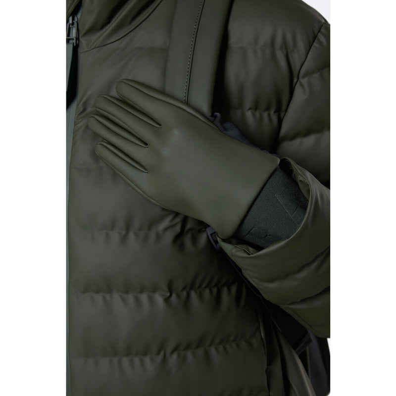 Gloves are an insulated winter accessory designed to provide warmth in cold conditions. Gloves feature a back hand cut from Rains PU coated fleece, neoprene on the palms, fleece inner and ribbed cuffs. The tips of the forefingers are touchscreen compatible.