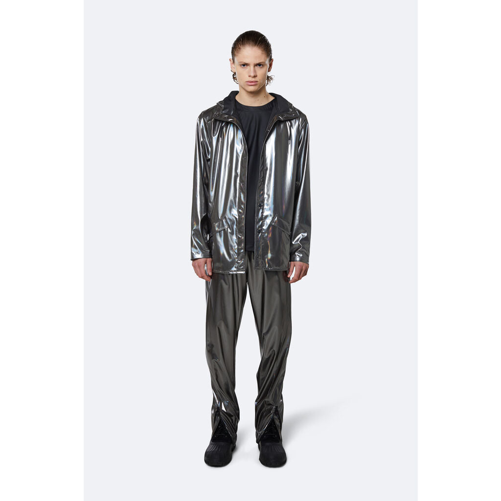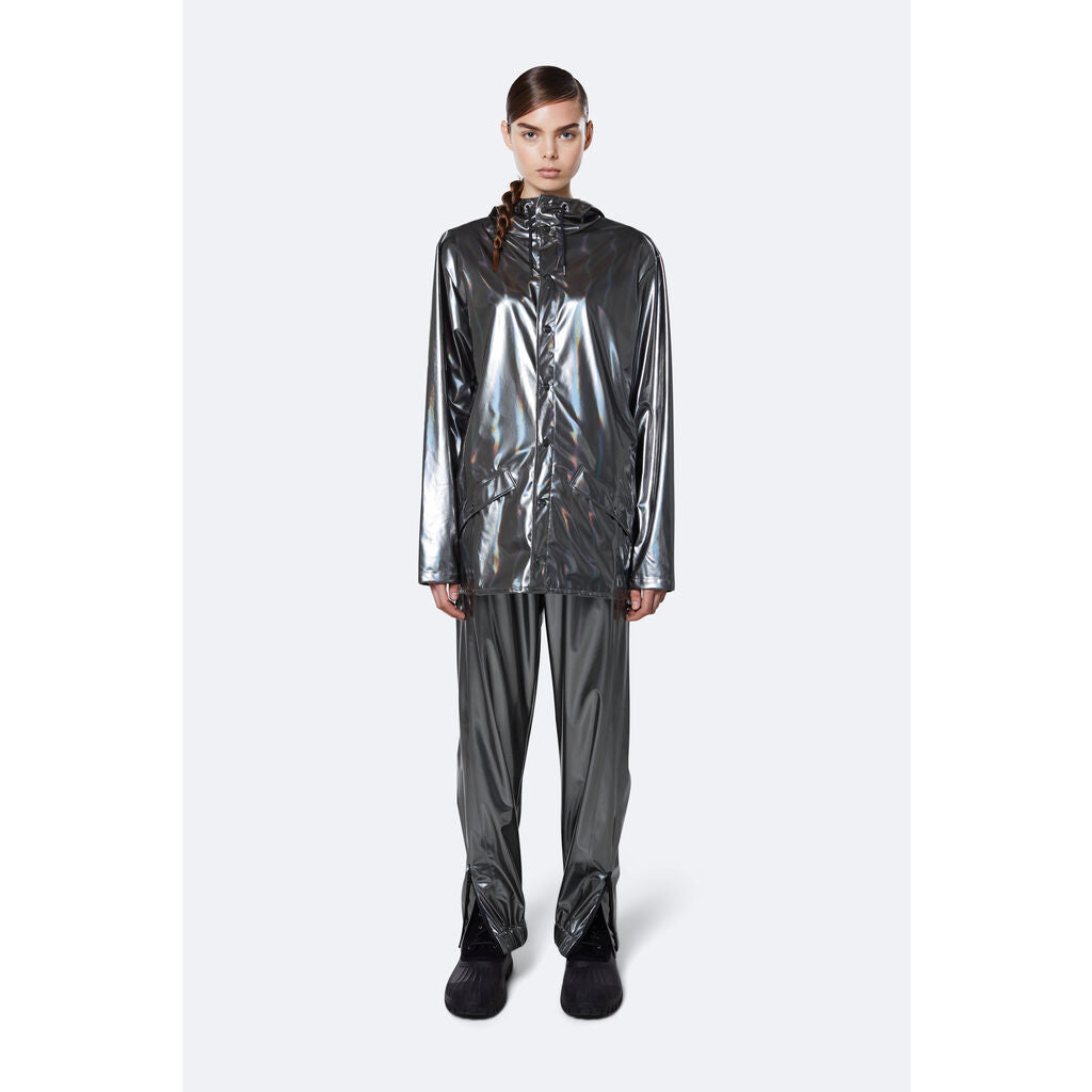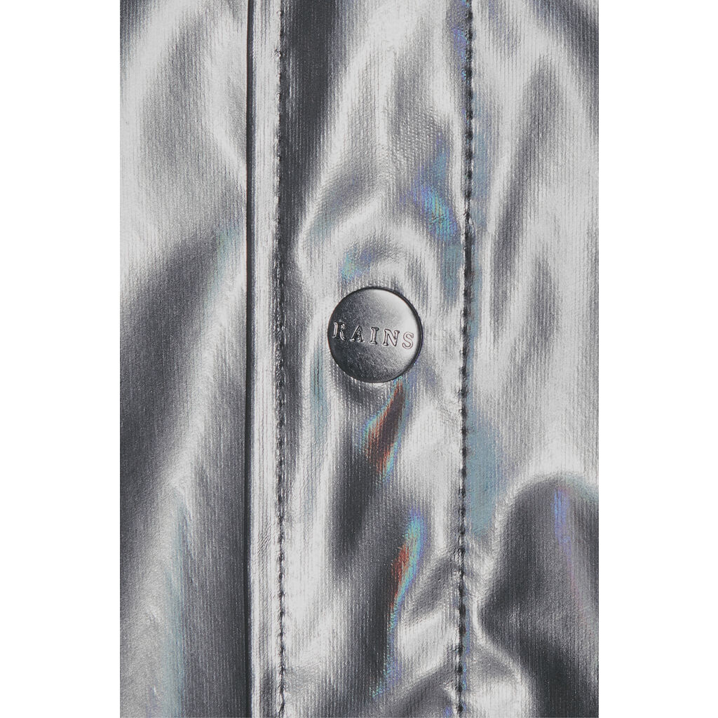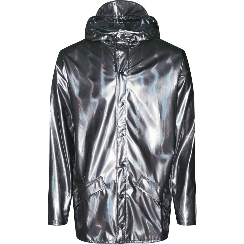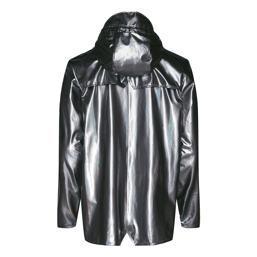 Holographic Jacket is a functional unisex rain jacket with a casual fit. Inspired by classic rainwear, Holographic Jacket is an urban version made from a water-resistant lightweight fabric with a holographic finish. Holographic Jacket features classic Rains details, such as the storm shield and an adjustable hood with a practical cap function.
